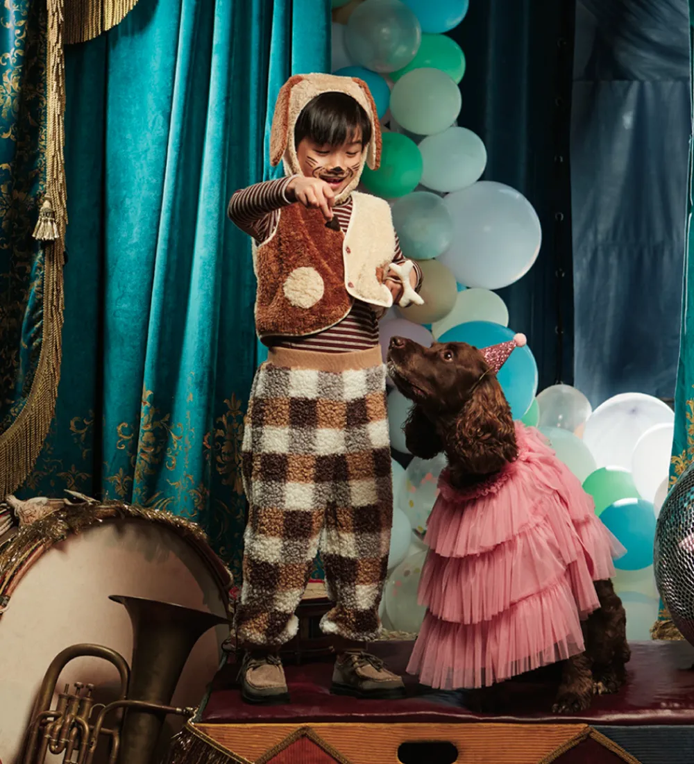 Fint Meri Meri udklædning af en beige og brun hundehvalp.