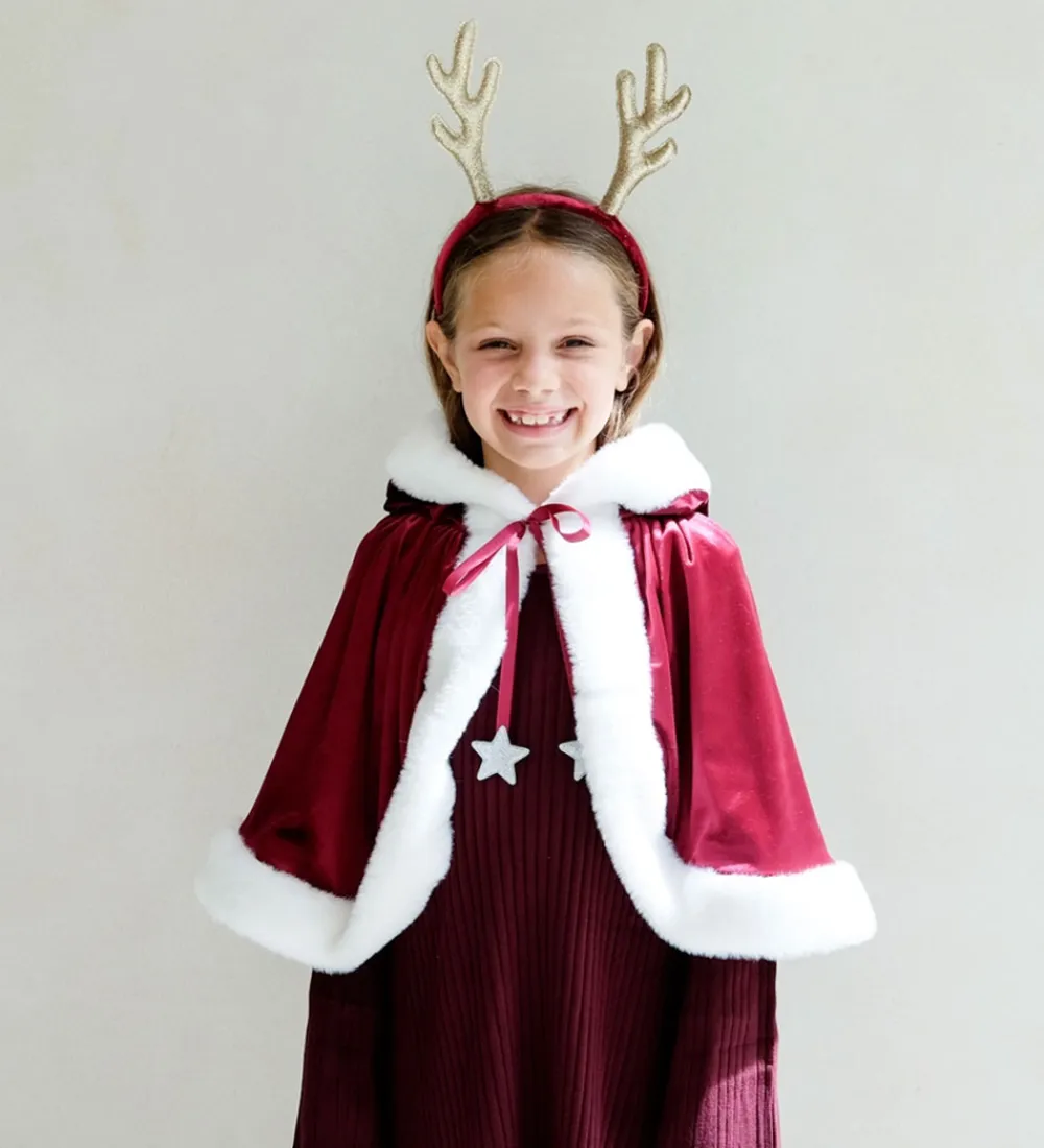 Mimi & Lula kappen lukkes om halsen med en trykknap, og fortil i halsåbningen sidder der en stor, flot sløjfe. Kappen har en hætte, og med kappen på, kan man lege julemandens kone, eller bare rigtigt komme i julestemning. Kappen er den perfekte tilføjelse til f.eks. julefesten, fastelavn eller bare til at lege der hjemme.