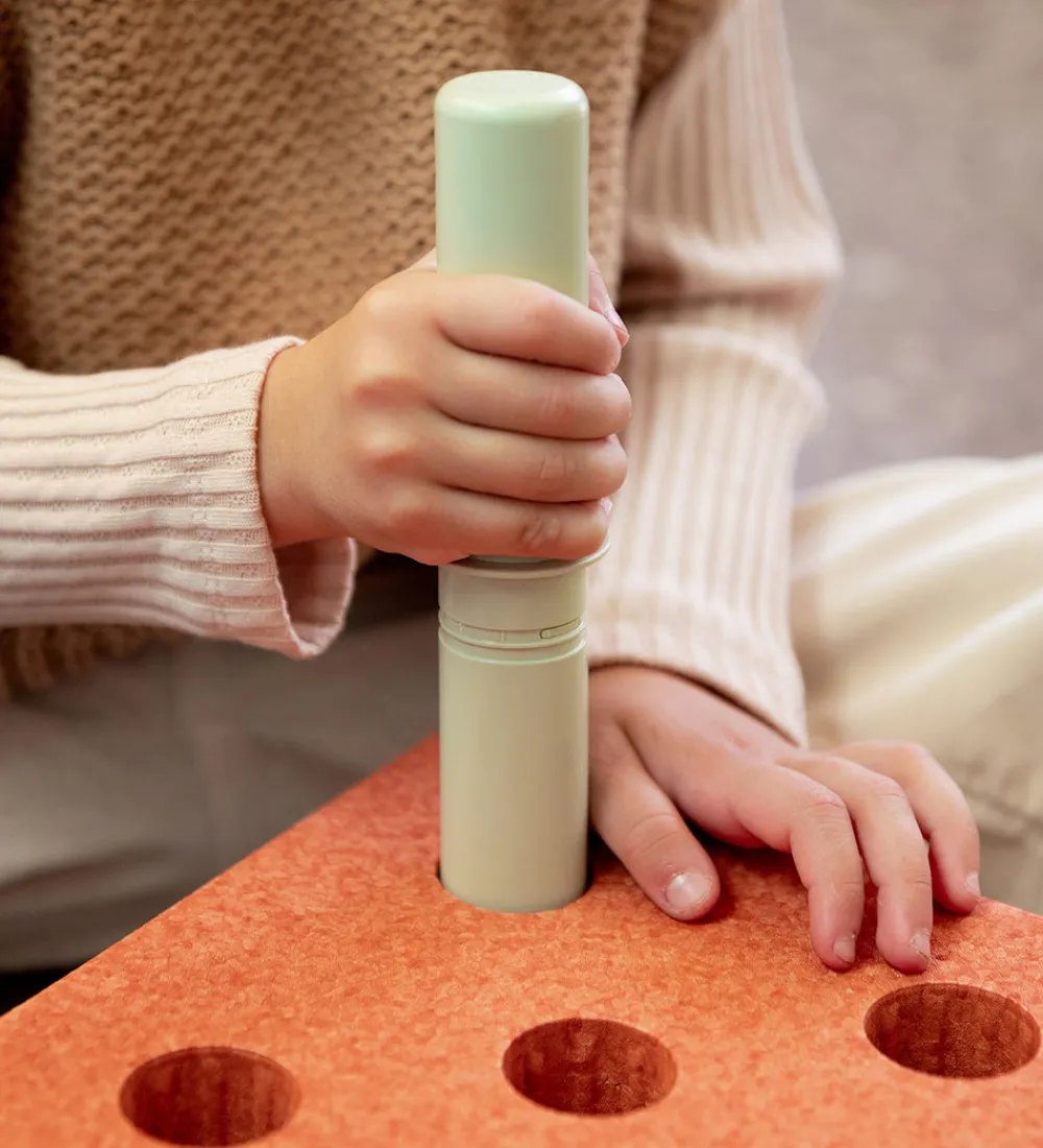 MODU samlepindene kan både bruges til at forbinde MODU klodser og som dekoration. Samlepindene sikrer, at barnet frit kan kravle rundt og lege på klodserne, da de stabiliserer forskellige kreationer lavet af klodserne. Samlepindene kan desuden også bruges som håndtag og de kan tages med i bad samt komme i opvaskemaskinen.