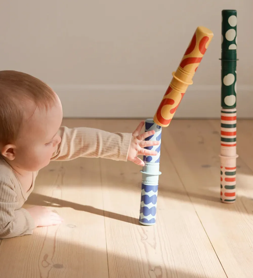 MODU raslepindene har hver deres unikke mønster og lyd, hvilket understøtter barnets tidlige udvikling og fremmer nysgerrighed.