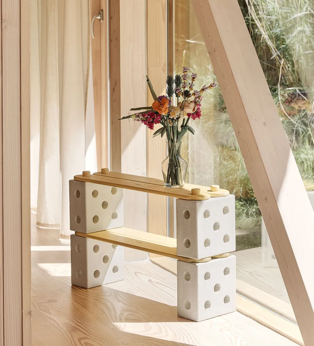 Sættet er lavet af genanvendeligt EPP-skum, fødevaregodkendt ABS samt birketræ. Det kan rengøres med en fugtig klud.