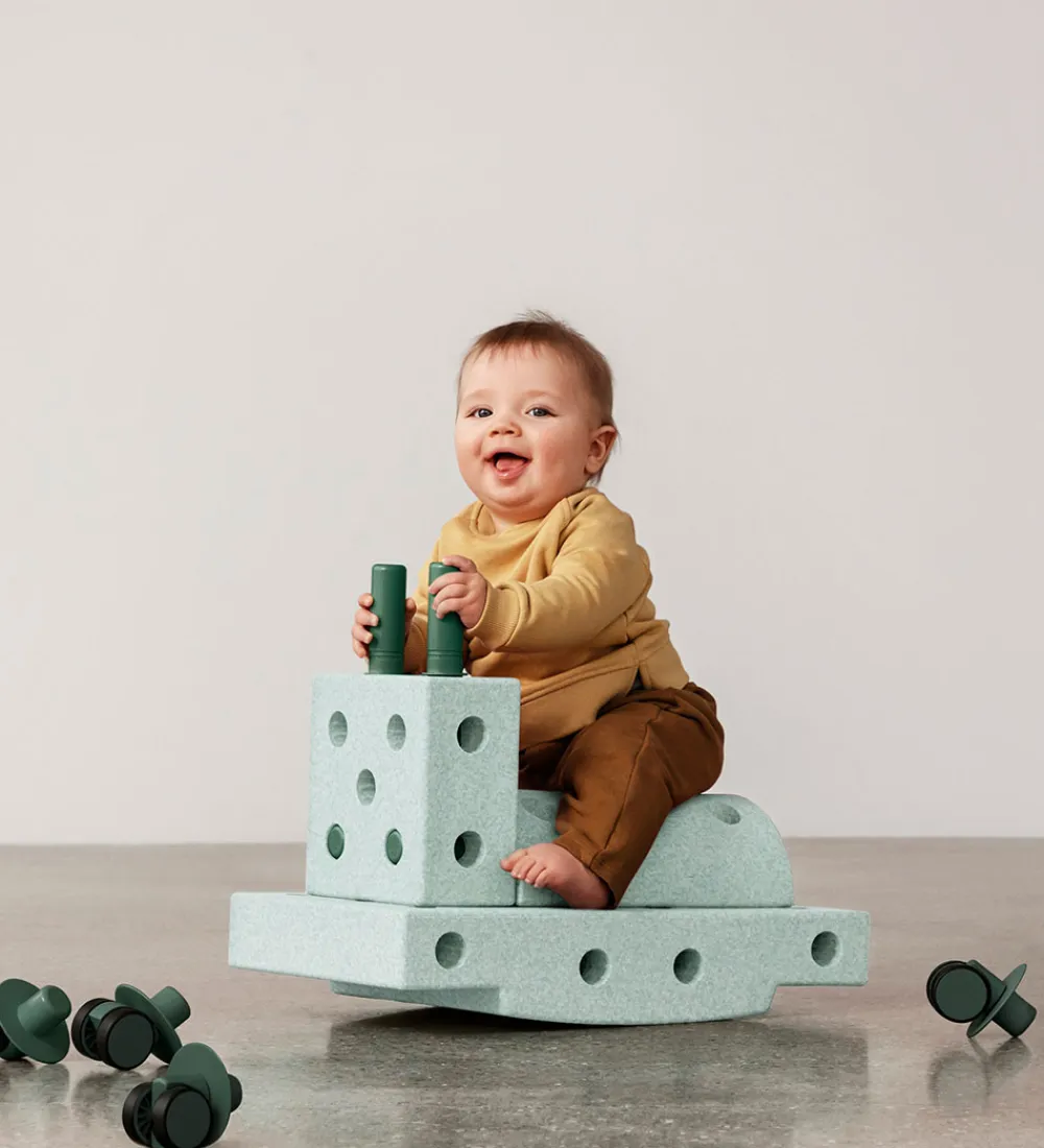 Sættet er lavet af genanvendeligt EPP-skum og fødevaregodkendt ABS. Delene kan vaskes med vand og en børste, tages med i bad og kan endda komme i opvaskemaskinen.