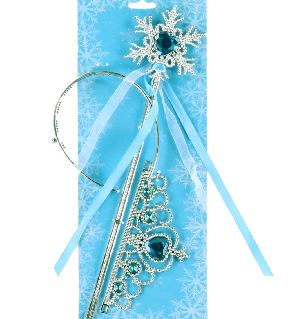 Elegant Molly & Rose udklædning i isblå. Sættet indeholder et smukt diadem og en magisk tryllestav dekoreret med glitrende sten og bånd, der sammen skaber et fortryllende look.