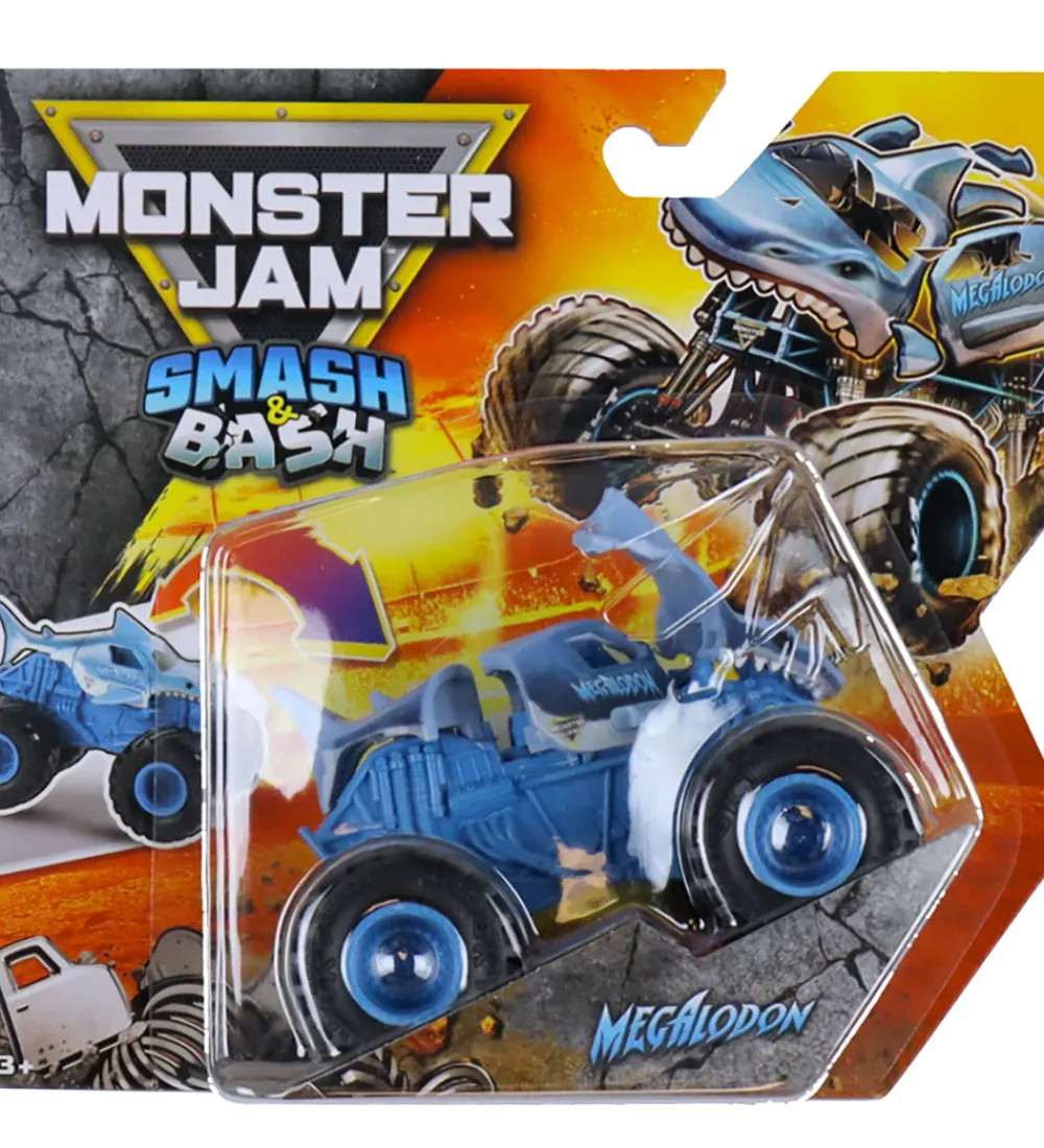 Fantastisk Monster Jam bil i en dynamisk blå farve. Monster Jam bilen fremhæver et iøjnefaldende Megalodon-design, der tilføjer ekstra spænding til legen. En sjov og unik tilføjelse til enhver legetøjssamling.