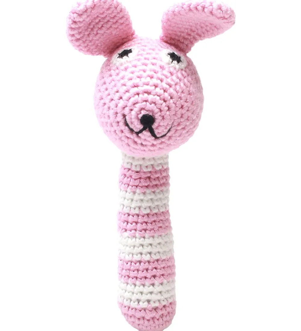 Sjov Nature Zoo rangle med Frøken Kanin med et lyserødt hoved med lange ører samt med et lyserød/cremestribet greb.