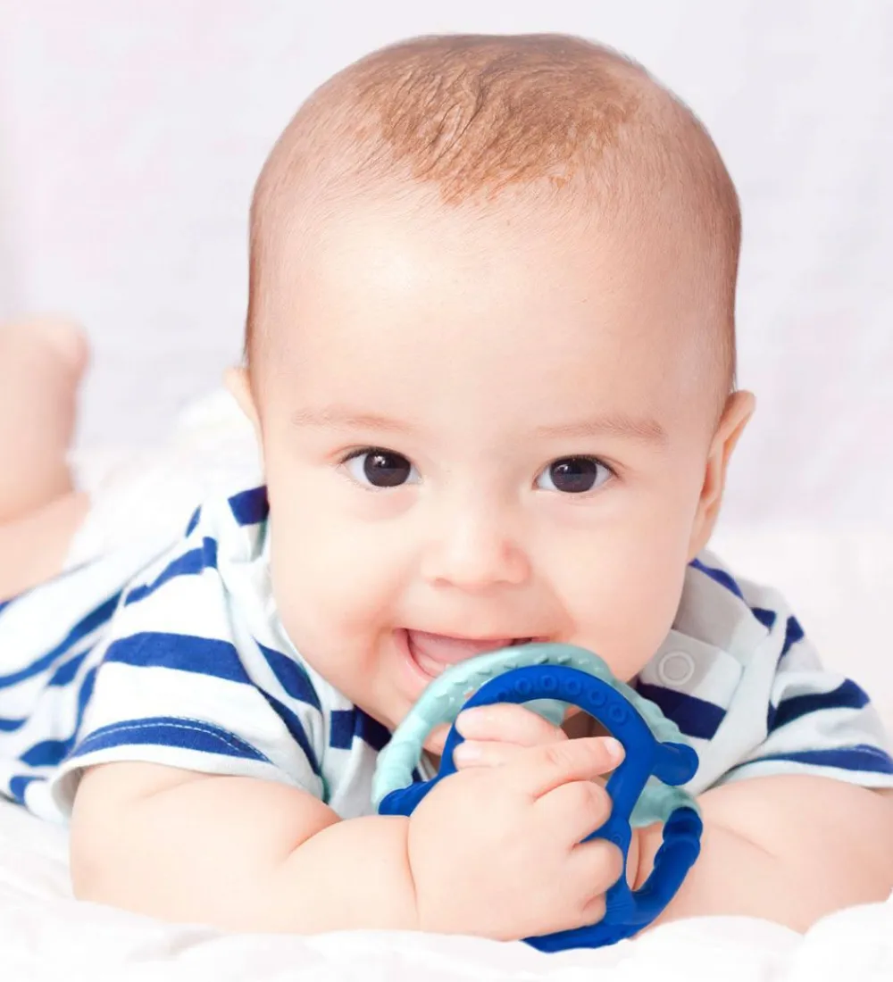 Ogobolli bidebolden er fremstillet i et fleksibelt og blødt silikonemateriale, som er behageligt for barnet at gumle på. Bolden kan krølles helt sammen og komme tilbage til sin oprindelige form. Bidebolden har praktiske prikker og riller, som vil være dejlige for de kløende gummer at tygge og lege med.