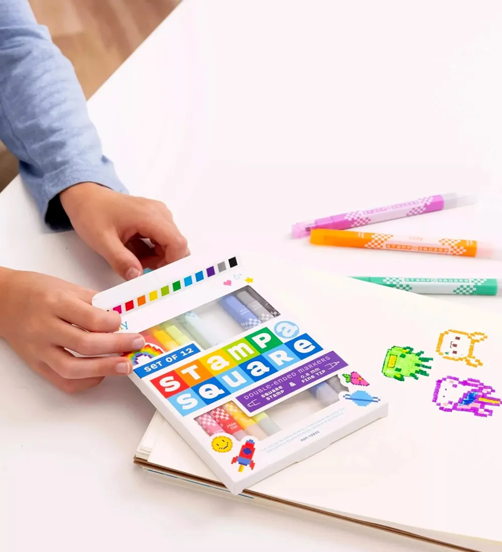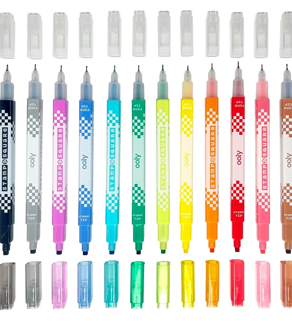 Farverige Ooly tuscher i en praktisk pakke med 12 forskellige nuancer. Hver tusch har en dobbeltsidet spids med både stempel- og finspidsfunktion, hvilket giver mulighed for kreativ udfoldelse og detaljeret tegning.