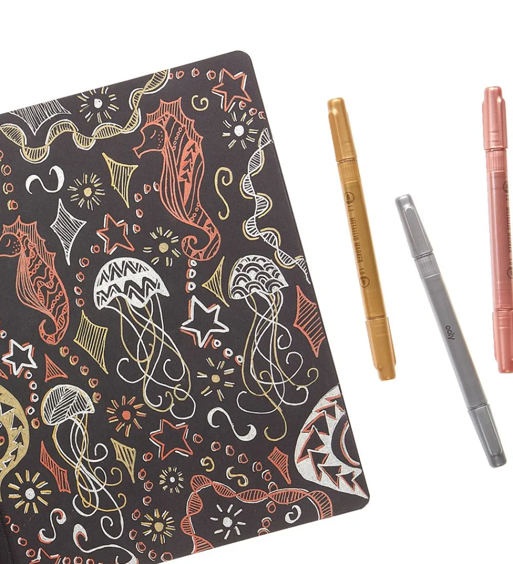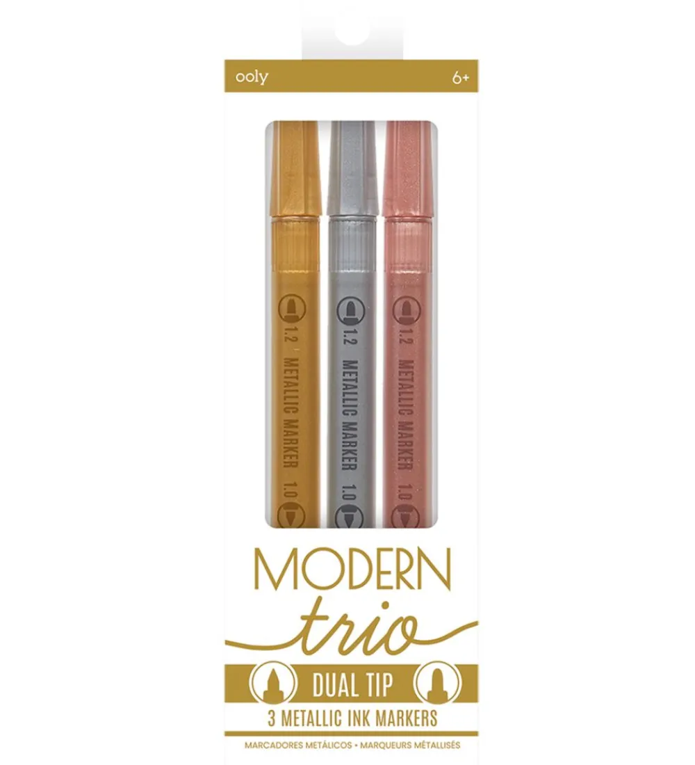 Gode Ooly tuscher i tre metaliske farver, som er bronze, guld og sølv.