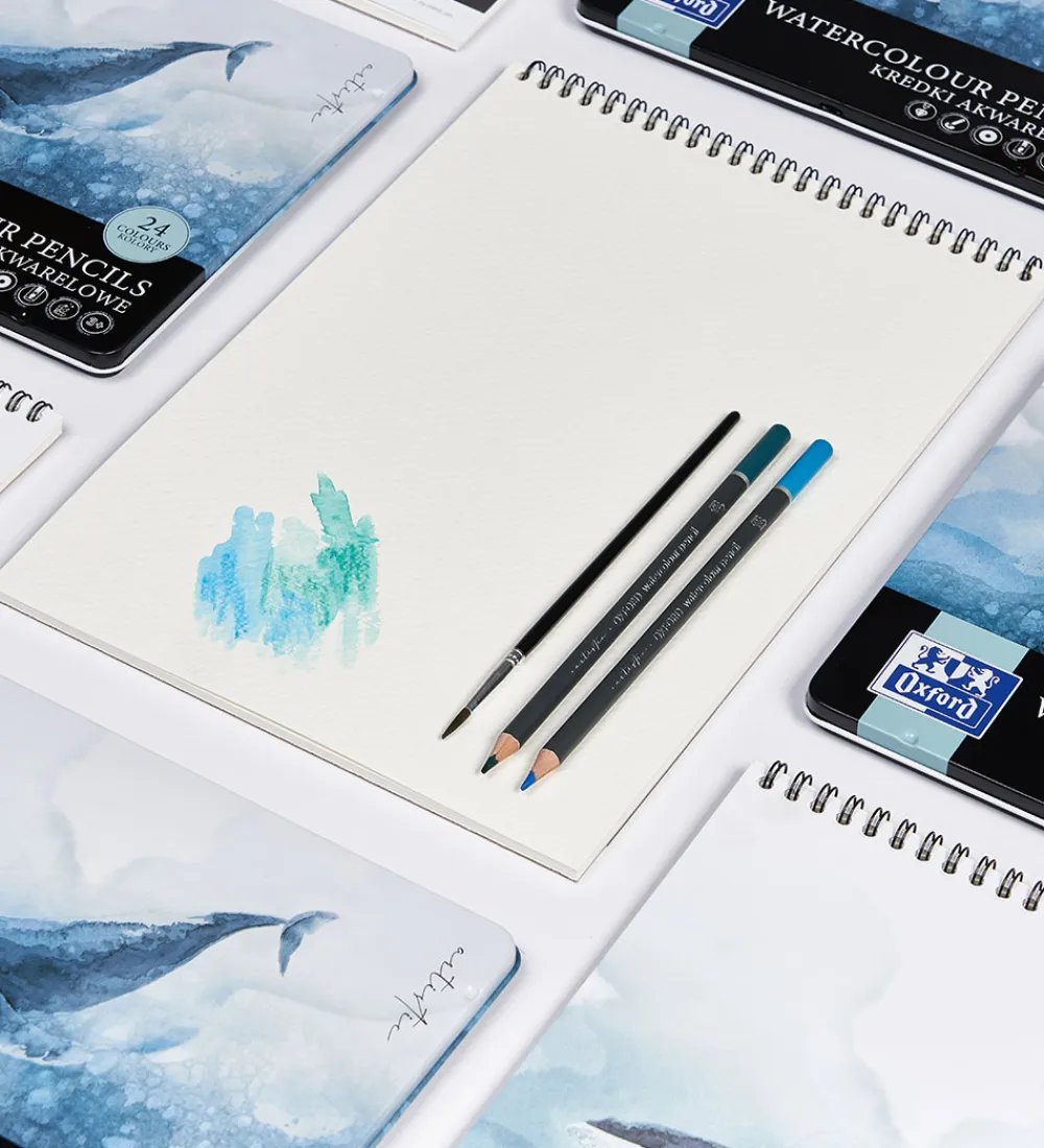 Oxford skitseblokken har spiralryg og den er perfekt til tegninger med vandfarver. Papirets kvalitet er på 300 g/m2.