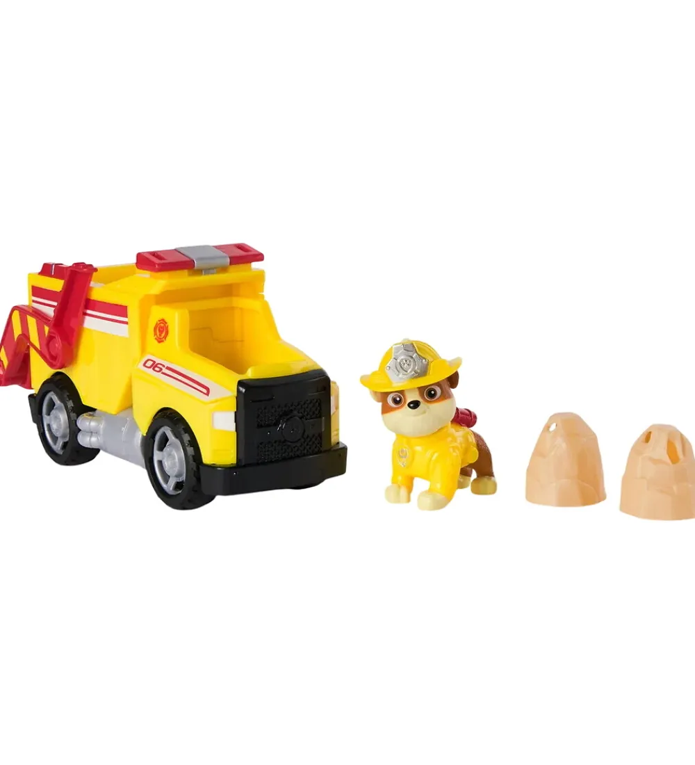Paw Partol bilen har en stor vippeanordning bagpå, som kan vippe de to medfølgende sten op på ladet, eller den kan kaste dem foran sig. Der medfølger også en figur, som forestiller Rubble, og den kan sidde i førersædet på dumperen.