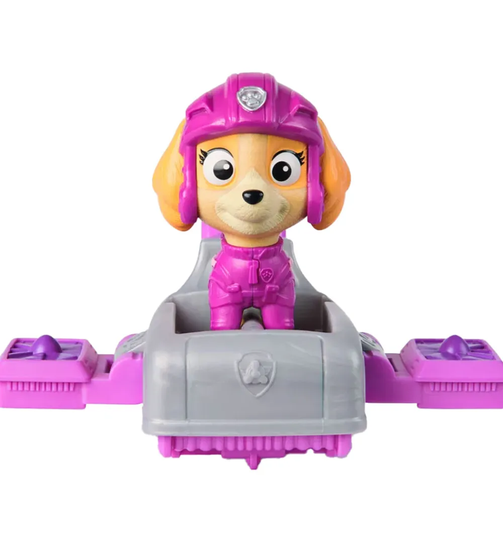 Smart Paw Patrol legetøjsfly i lilla og grå med en figur af Skye fra Paw Patrol.