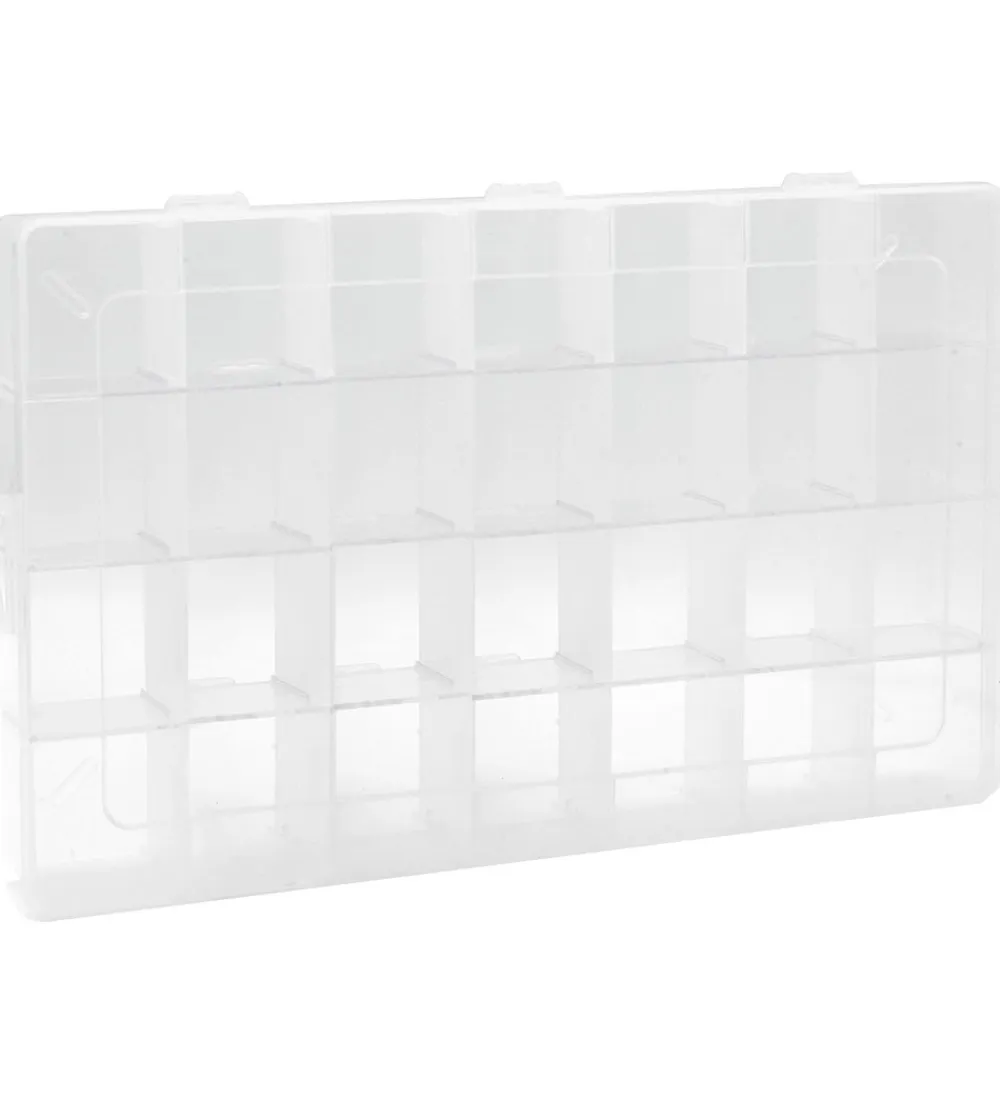 Fin Pearl N Fun opbevaringsboks til perler i transparent plastik med 28 rum.