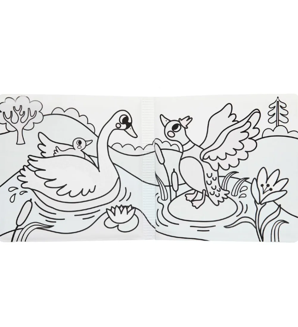 Petit Monkey badebog er magisk på en sådan vis, at når de sort/hvide illustrationer på bogens vandtætte sider kommer i kontakt med vand, træder alle farvene frem.