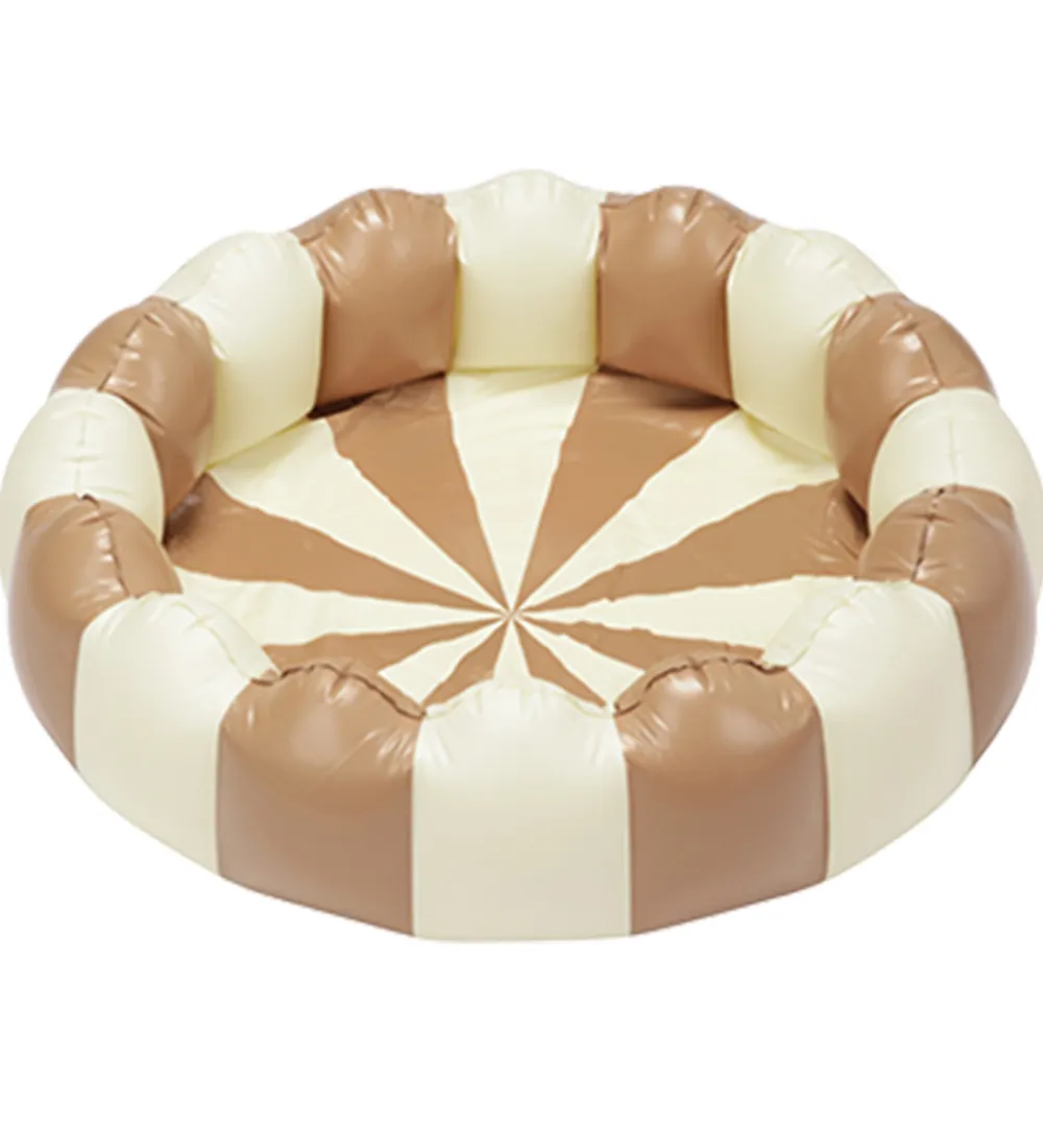 Fint Petites Pommes badebassin i et stribet design med cremehvide og karamelbrune farver.
