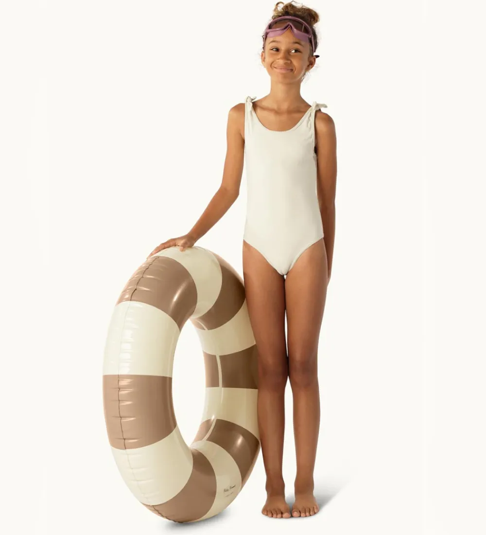 Skøn Petites Pommes badering i et stribet design i cremehvid og kaffebrun.