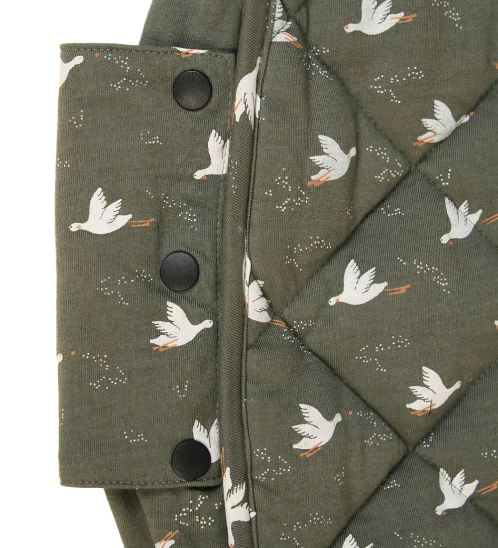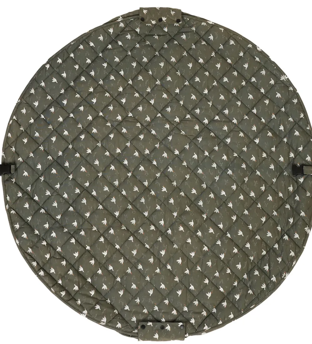 Skønt Play&Go legetøjstæppe i en mørkegrøn farve med et fint allover print af små fugle.