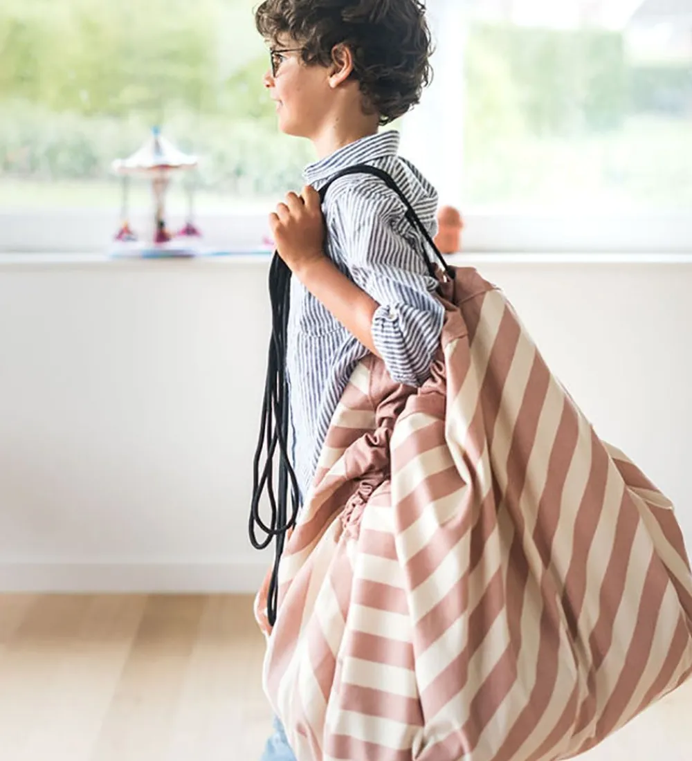 Smart Play&Go legetøjstæppe med rosa og beige striber.