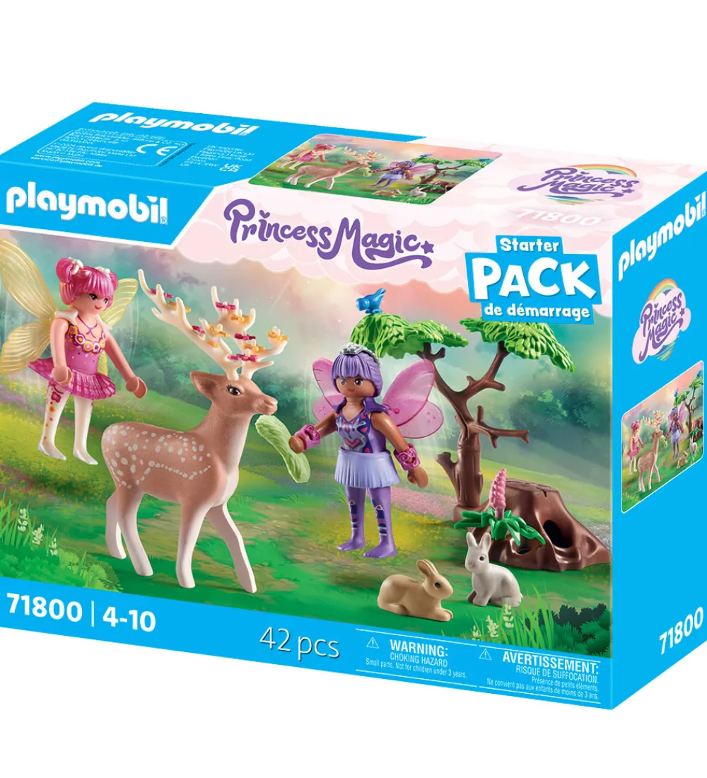 Hyggeligt Playmobil Princess Magic sæt med i alt 42 dele, der tilsammen udgør to feer og en skovscene med skovdyr og tilbehør.