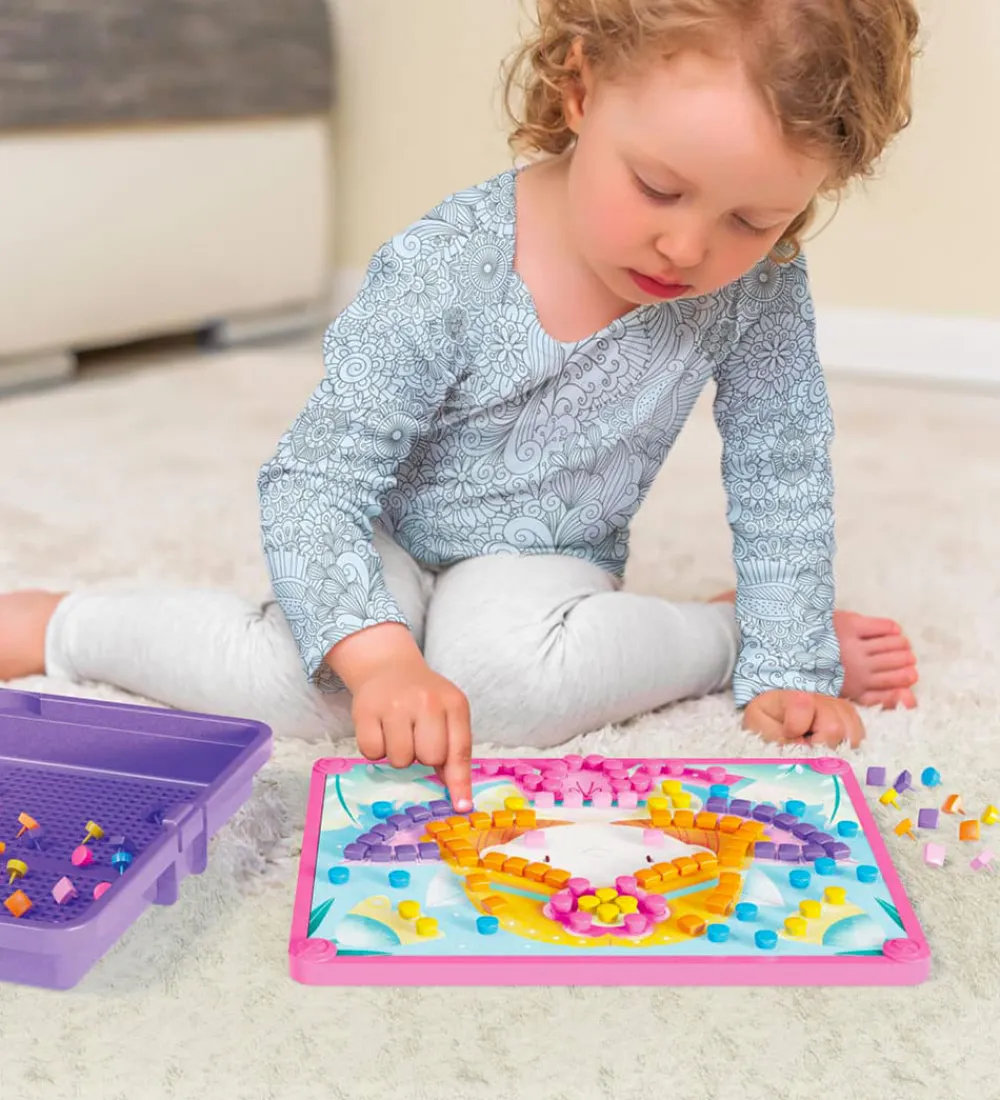 Stiftmosaikken er perfekt til børnehavebarnet, og stimulerer de finmotoriske færdigheder, hånd-øje-koordination og kreativ tænkning. Quercetti udvikler legetøj ud fra STEAM-læring, som indebærer videnskab, teknologi, ingeniørarbejde, kunst og matematik.