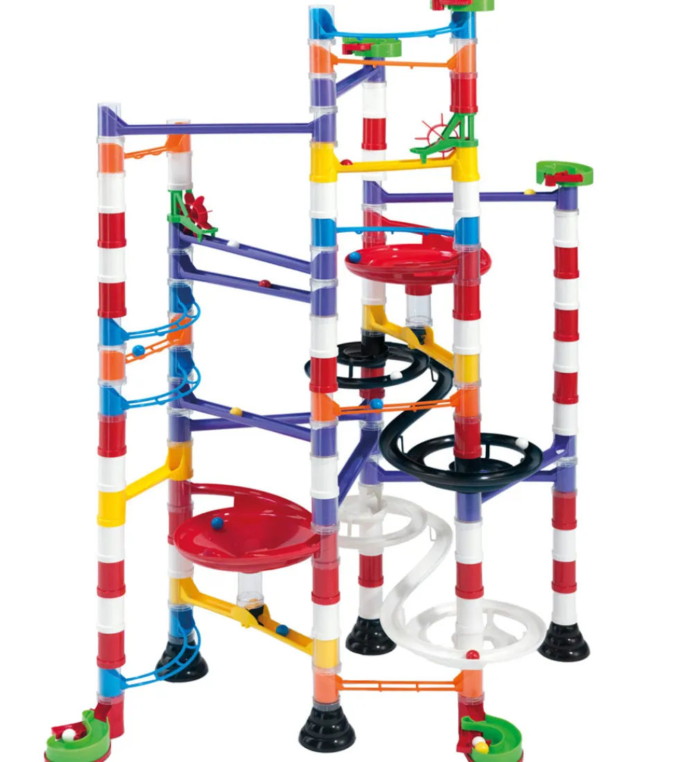 Kuglebanen er perfekt til byggeglade børn og stimulerer de visuel-rumlige evner, årsag/virkning-princippet og problemløsning. Quercetti udvikler legetøj ud fra STEAM-læring, som indebærer videnskab, teknologi, ingeniørarbejde, kunst og matematik.