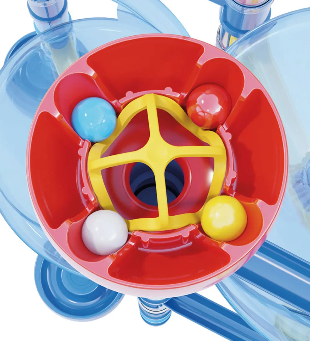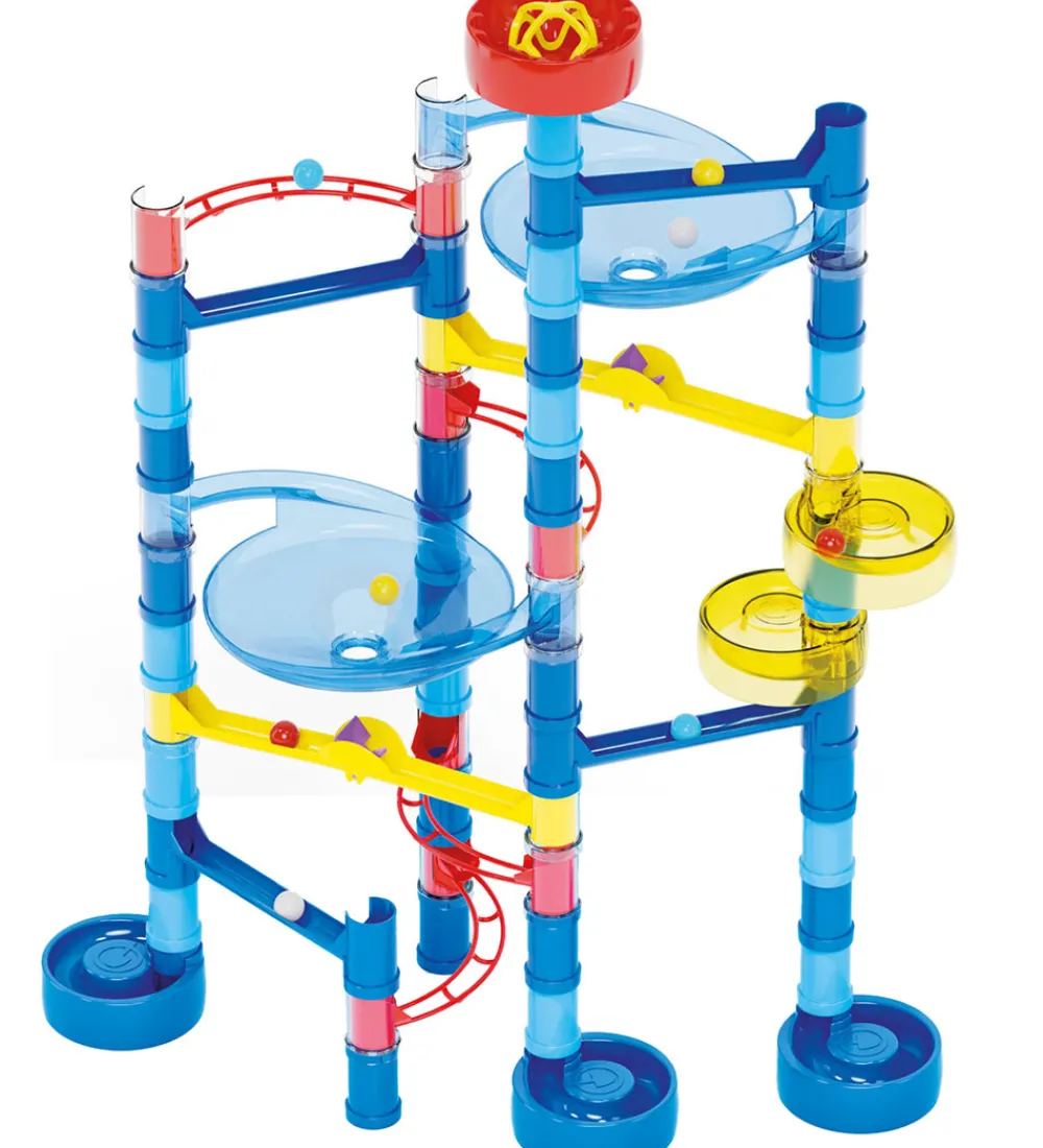 Fin Quercetti kuglebane i flotte farver, der kan samles på flere måder. I æsken medfølger: