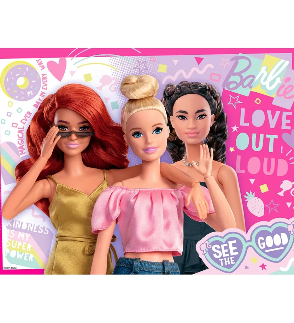 Fint Ravensburger puslespil med motiv fra Mattels Barbie.