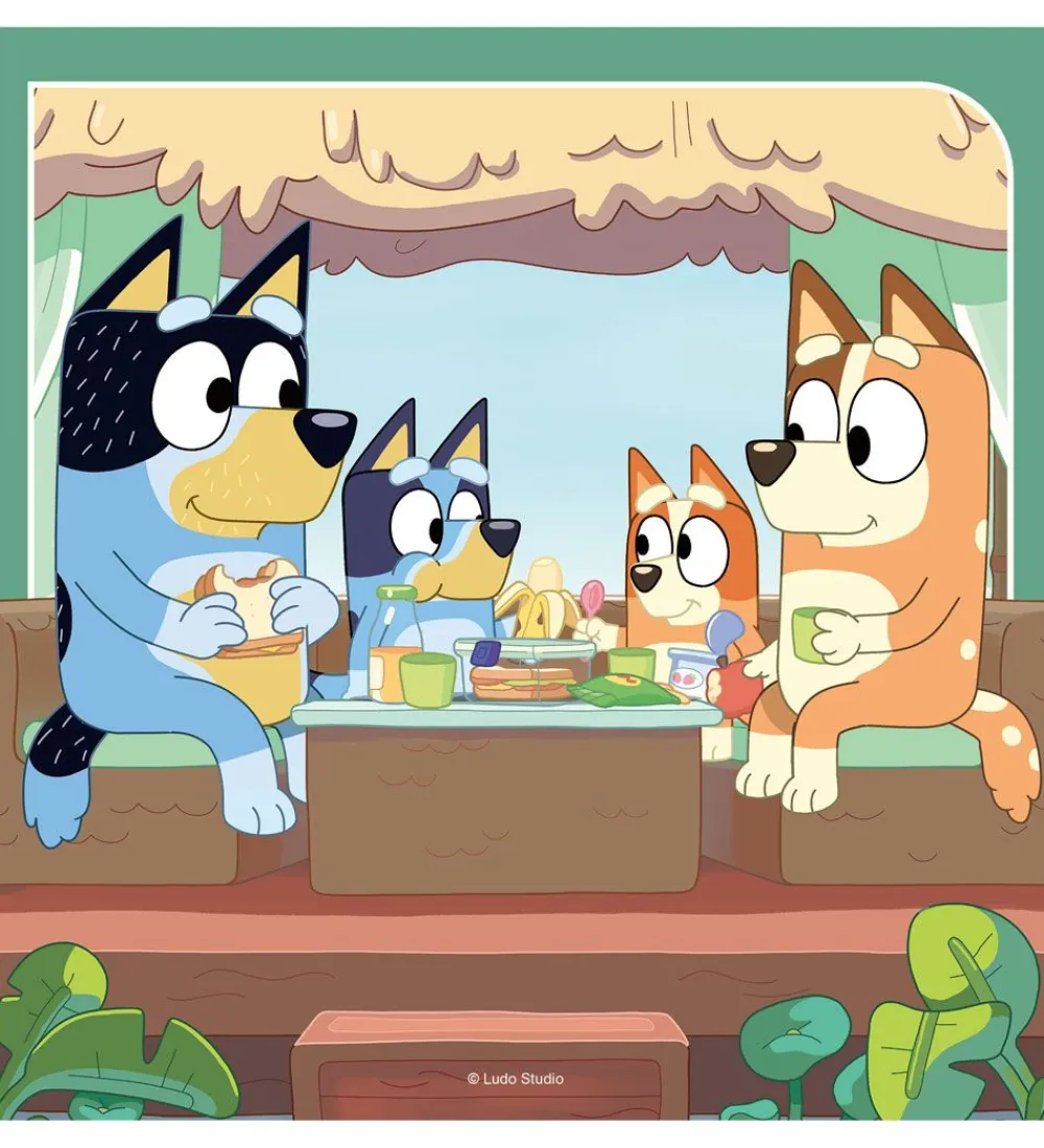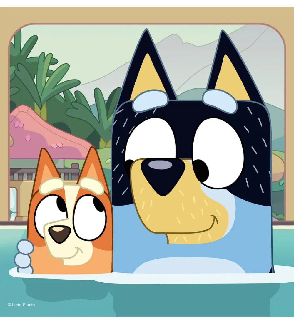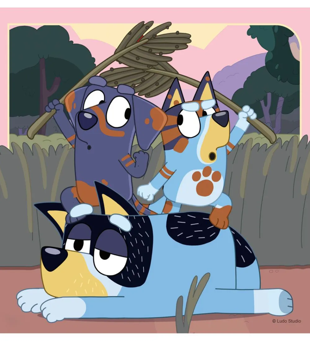 Smart Ravensburger puslespil med 3 forskellige puslespil af 49 brikker. På alle tre er der motiver fra serien Bluey.