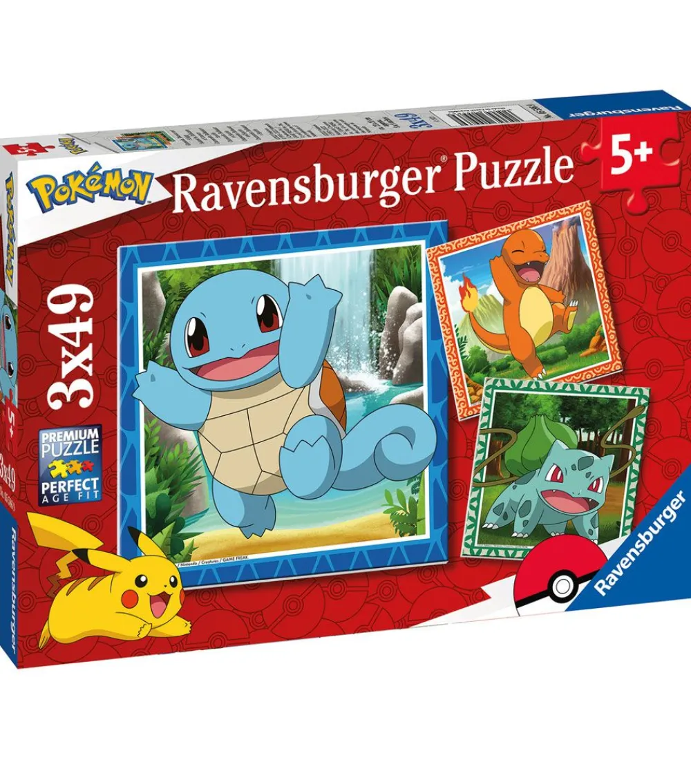 Smart Ravensburger puslespil med 3 forskellige puslespil af 49 brikker. På alle tre er der motiver af seje pokemon figurer.