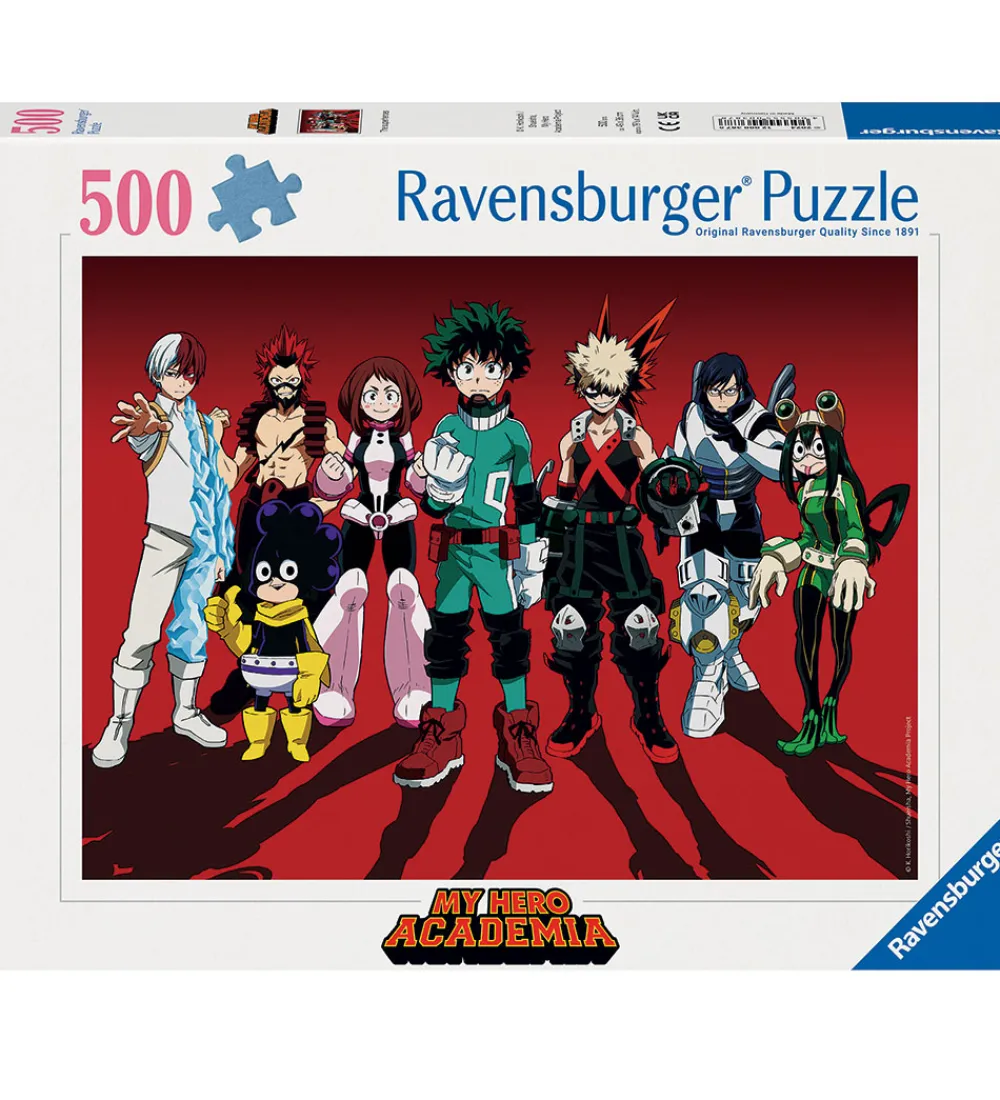 Fedt Ravensburger puslespil med et motiv af karakterene fra My Hero Academia.