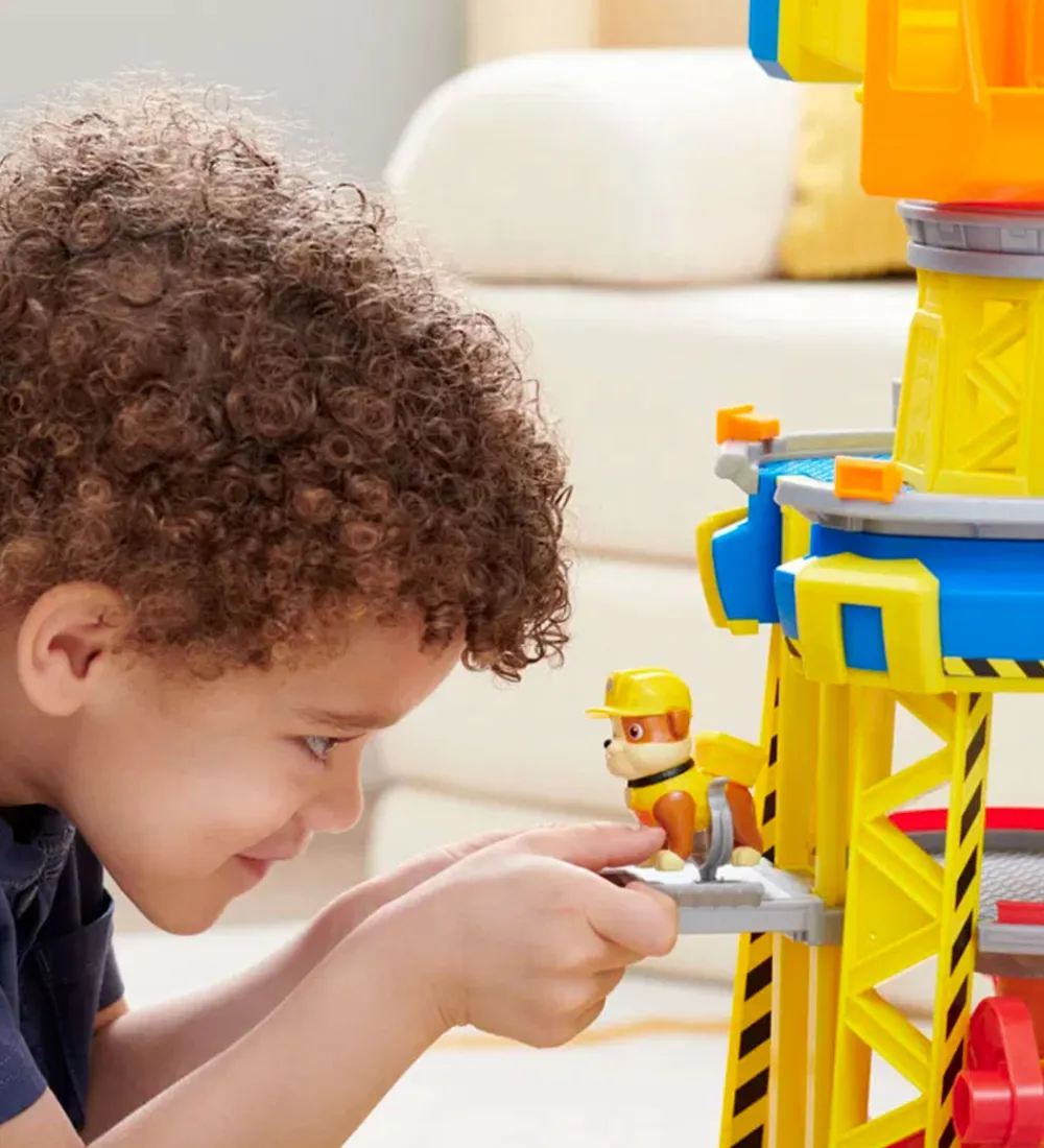Rubble & Crew kranen kan lægge kinetisk sand ind i tårnet, og man kan indsætte forskellige forme, som kan presses ned over sandet. På den store kran kan man uskifte delene, så den enten kan hejse en grab op og ned eller en læsseplade. Kranen kan sige lyde og lyse op, så den lyder som en rigtig arbejdsplads. Der medfølger en arbejdsbil samt en figur så legen kan begynde med det samme.