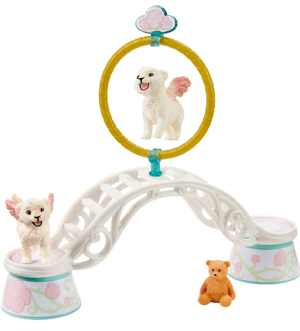 Fint Schleich sæt bestående af to babyløver med en masse forskelligt udstyr.