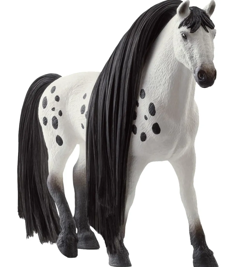 Schleich hesten er støbt i hårdt plast, så det er ekstra holdbart til mange års kreative og fantasifulde lege. Figurene er håndmalet med kærlighed og sans for detaljer, der ikke kun vil blive elsket af børnene, men også vil begejstre forældrene. Hestens manke og hale kan nemt tages af og byttes ud med en andens hest hår.