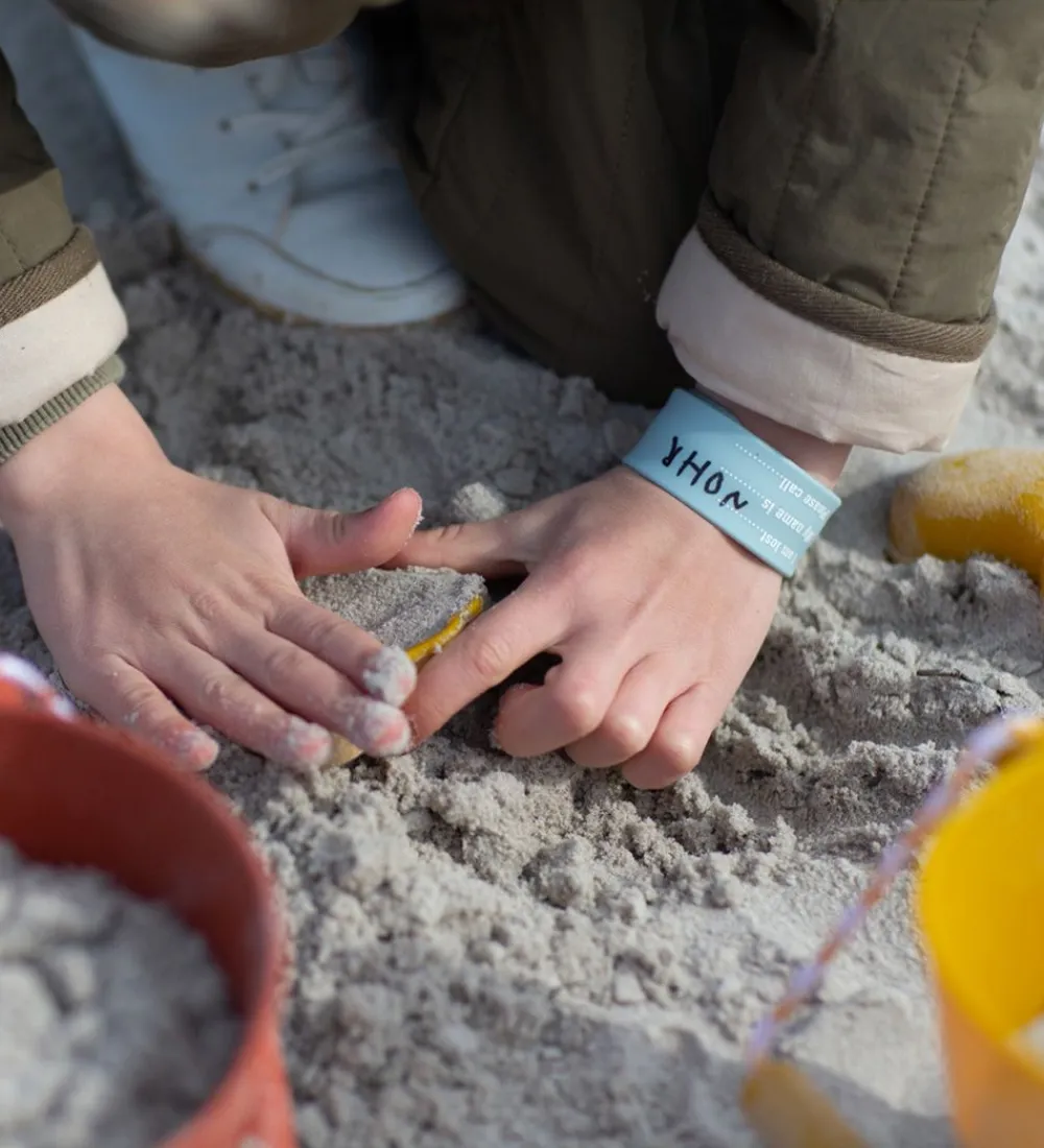 Schrunch sandformene er lavet af blødt, fleksibelt og foldbart silikone, så de er lette at have med i strandtasken. Sandformene forestiller en fod, en krabbe, en muslinge skal og en delfin.