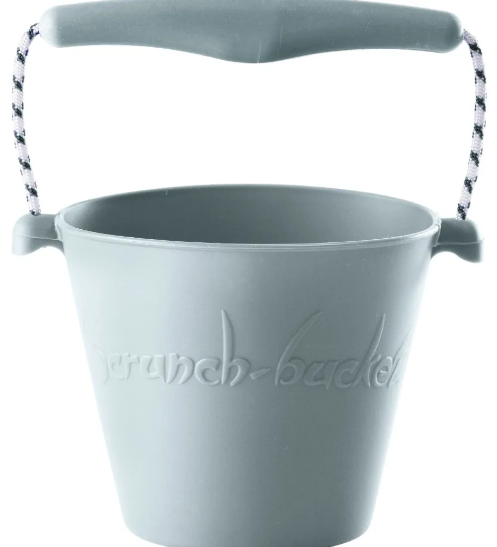 Scrunch spanden kan rumme 1,5 liter, og den er fremstillet af fleksibelt og foldbart silikone, som gør den let at have med i strandtasken eller kufferten. Foroven har spanden et praktisk og skridsikkert håndtag, der passer perfekt i barnets hånd.