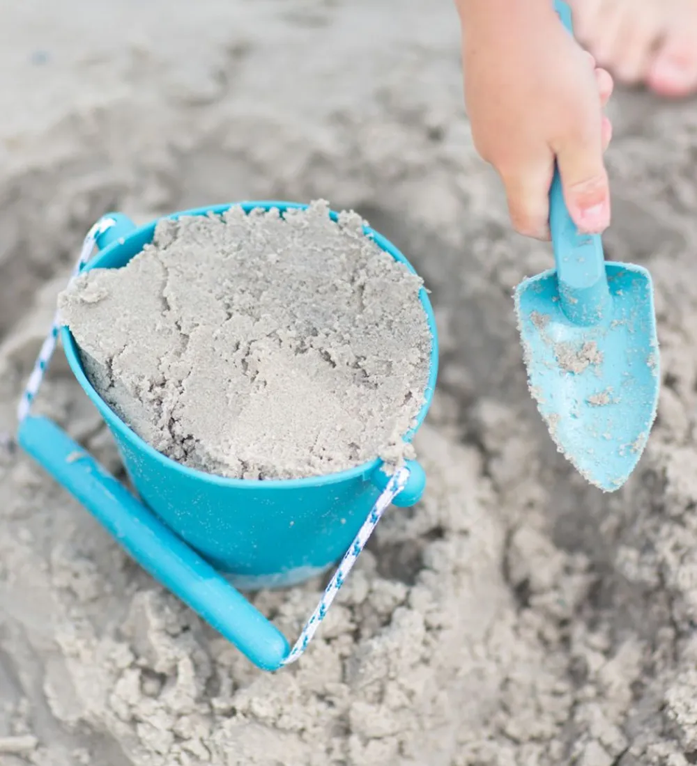Scrunch spanden kan rumme 1,5 liter. Den er lavet af fleksibelt, blødt og foldbart silikone, så den er let at have med i strandtasken eller kufferten. Spanden har et praktisk, skridsikkert håndtag der passer perfekt ind i barnets hånd.