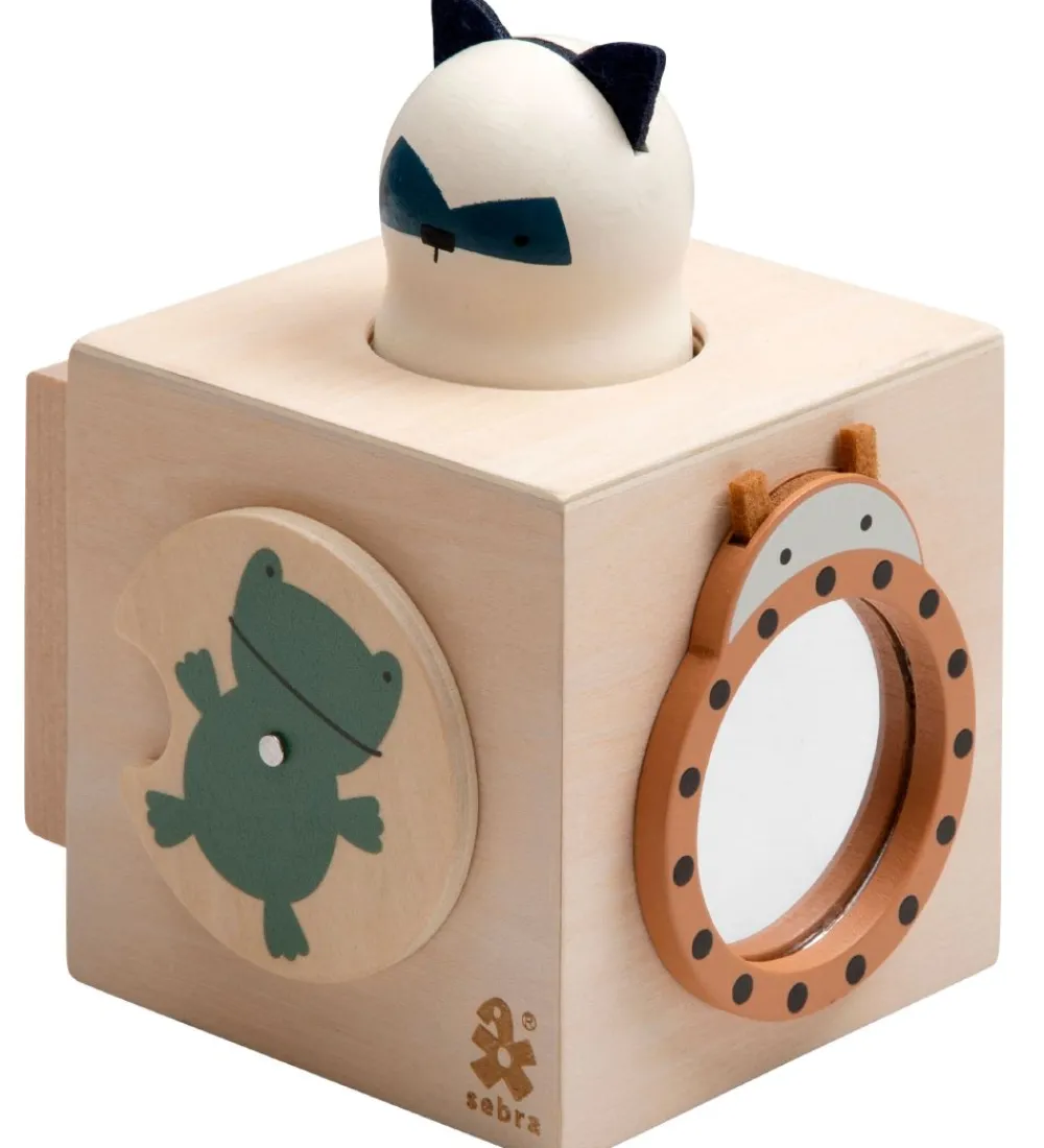 Skønt Sebra aktivitetslegetøj i form af en trækube med fem siders sjove aktiviteter:
