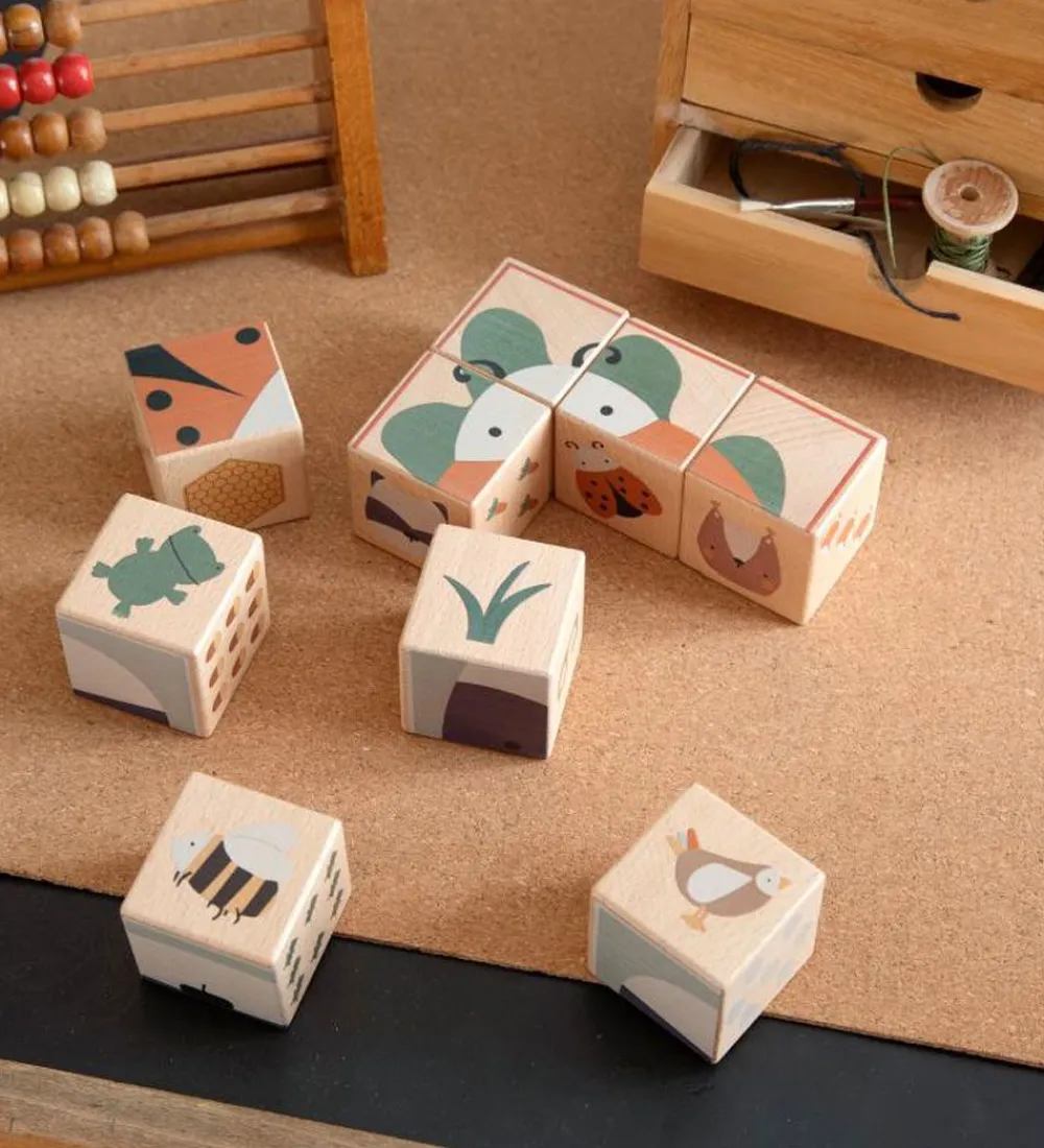 Sebra puslespillet består af 9 klodser, som har seks forskellige motiver på hver side. Klodserne kan danne to puslespil, viser tallene fra 1-9, dyr og grøntsager med mængden 1-9 på og forskellige motiver af dyr. Puslespillet kan derfor bruges til mange forskellige ting.