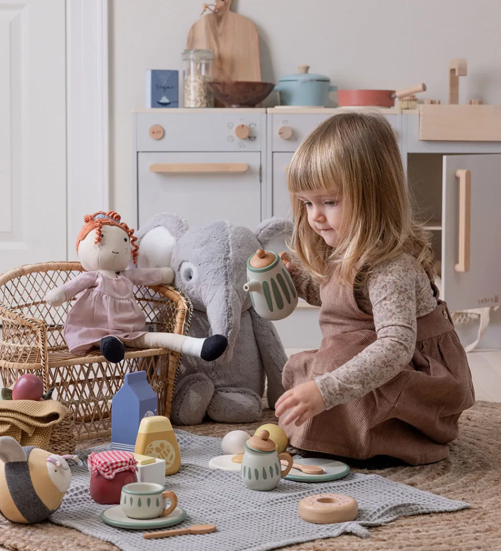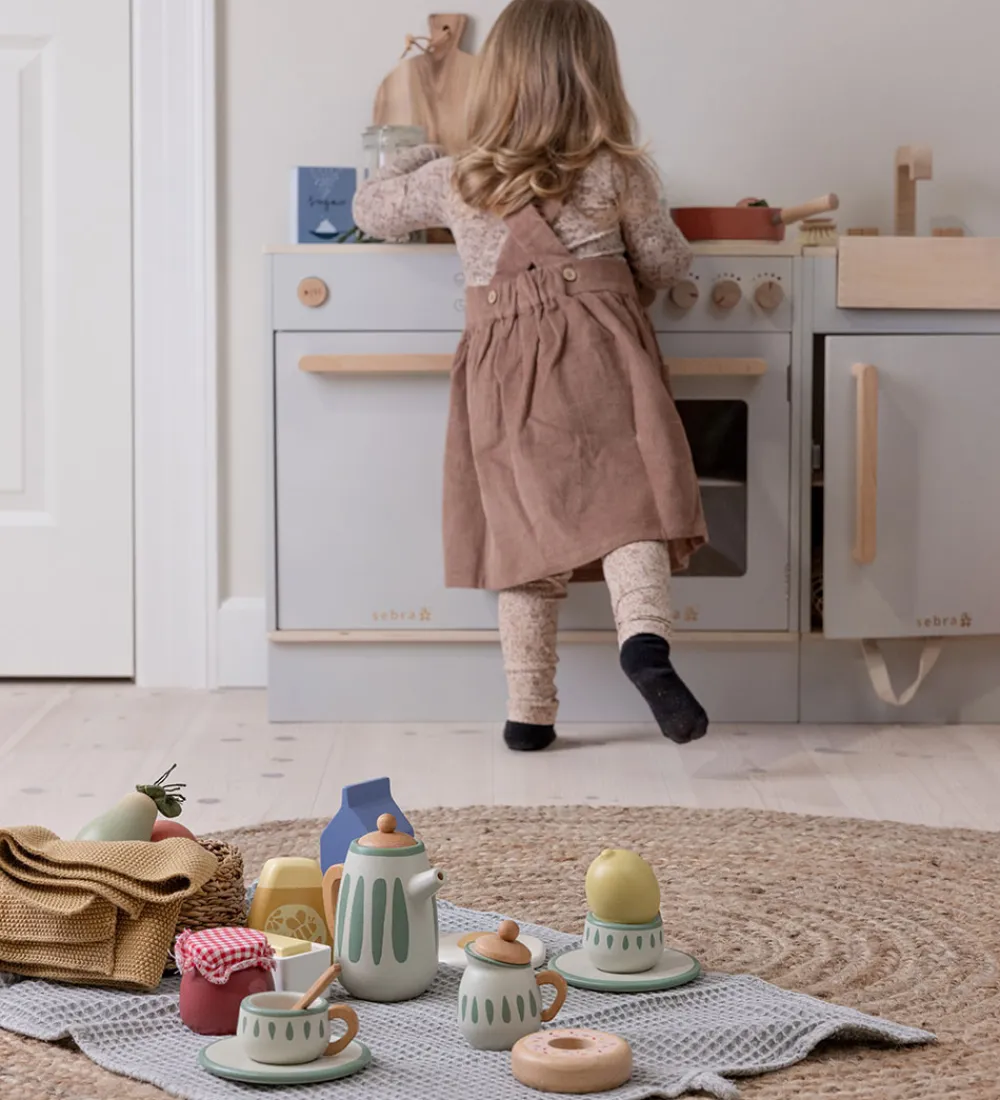 Sebra te-sættet er fremstillet af træ og er malet i hvid med grønne detaljer. Te-sættet er perfekt og vil skabe glæde ved ethvert teselskab. Børn i alle aldre vil elske at serverer te til deret forældre, venner eller tøjdyr.