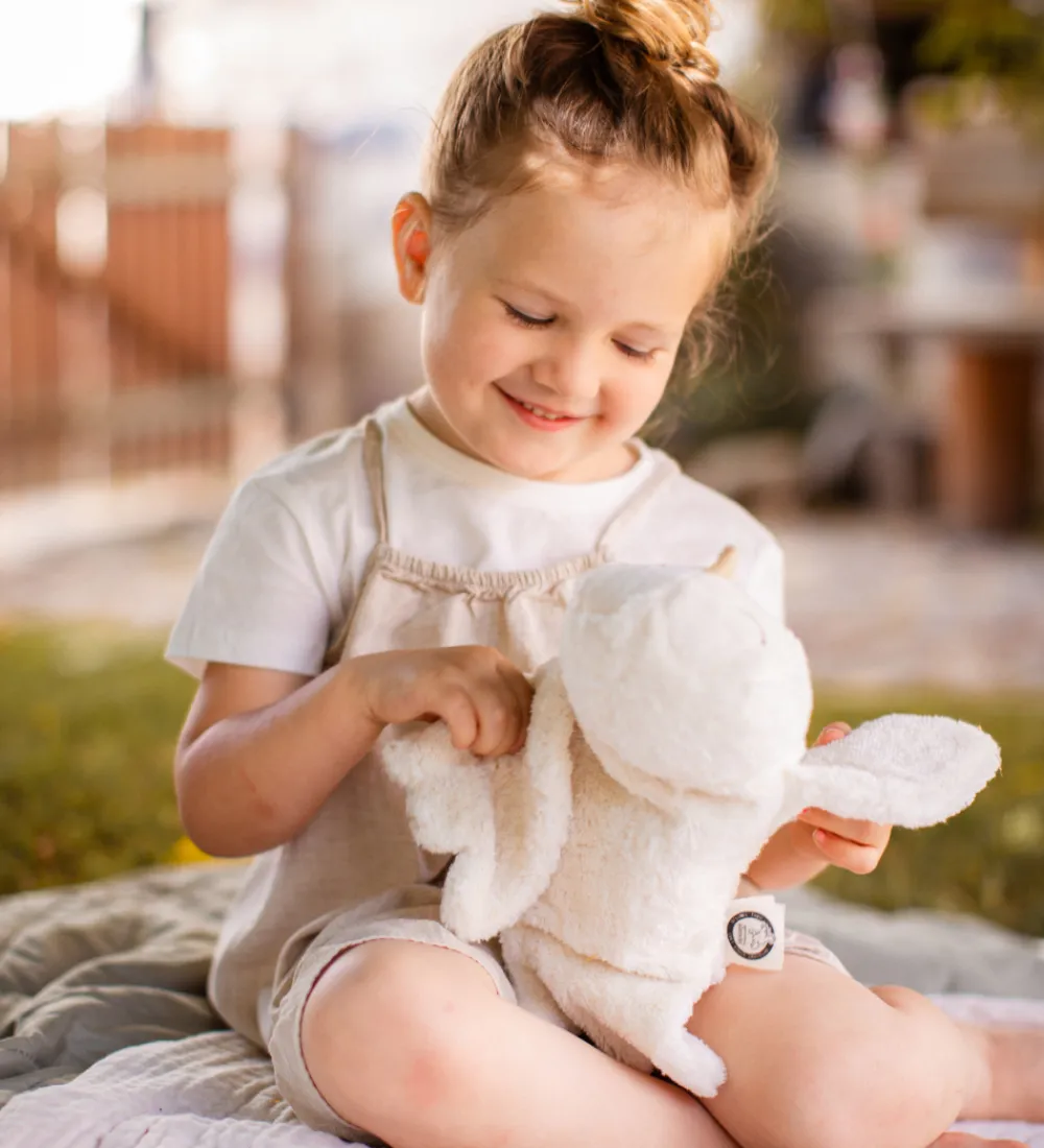 Senger Naturwelt varmepuden er lavet af bomuldsplys, og indeni har den en pose med skaller af spelt, som kan varmes, så bamsen er lun og rar at putte med, når barnet f.eks. har mavepine, er forkølet eller bare har brug for at kramme en velkendt ven.