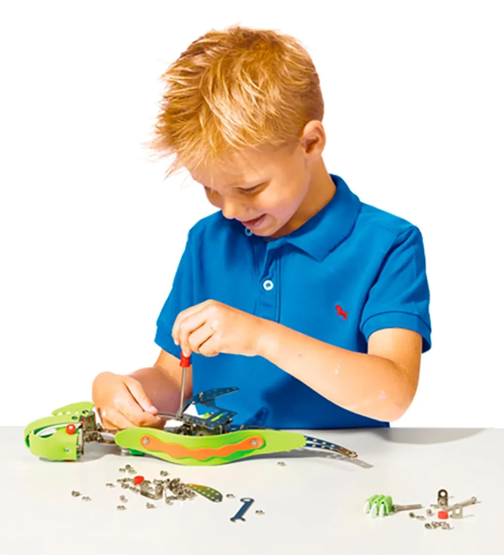 Konstruktionssættet egner sig perfekt til det kreative barn, som ønsker at bygge og skrue sine egne dinosaurer sammen.