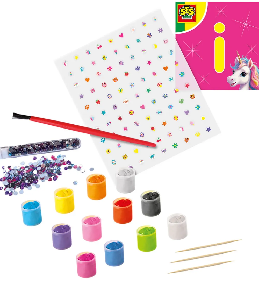 Farverigt SES Creative kreasæt til at dekorere negle. Kreasættet indeholder følgende: