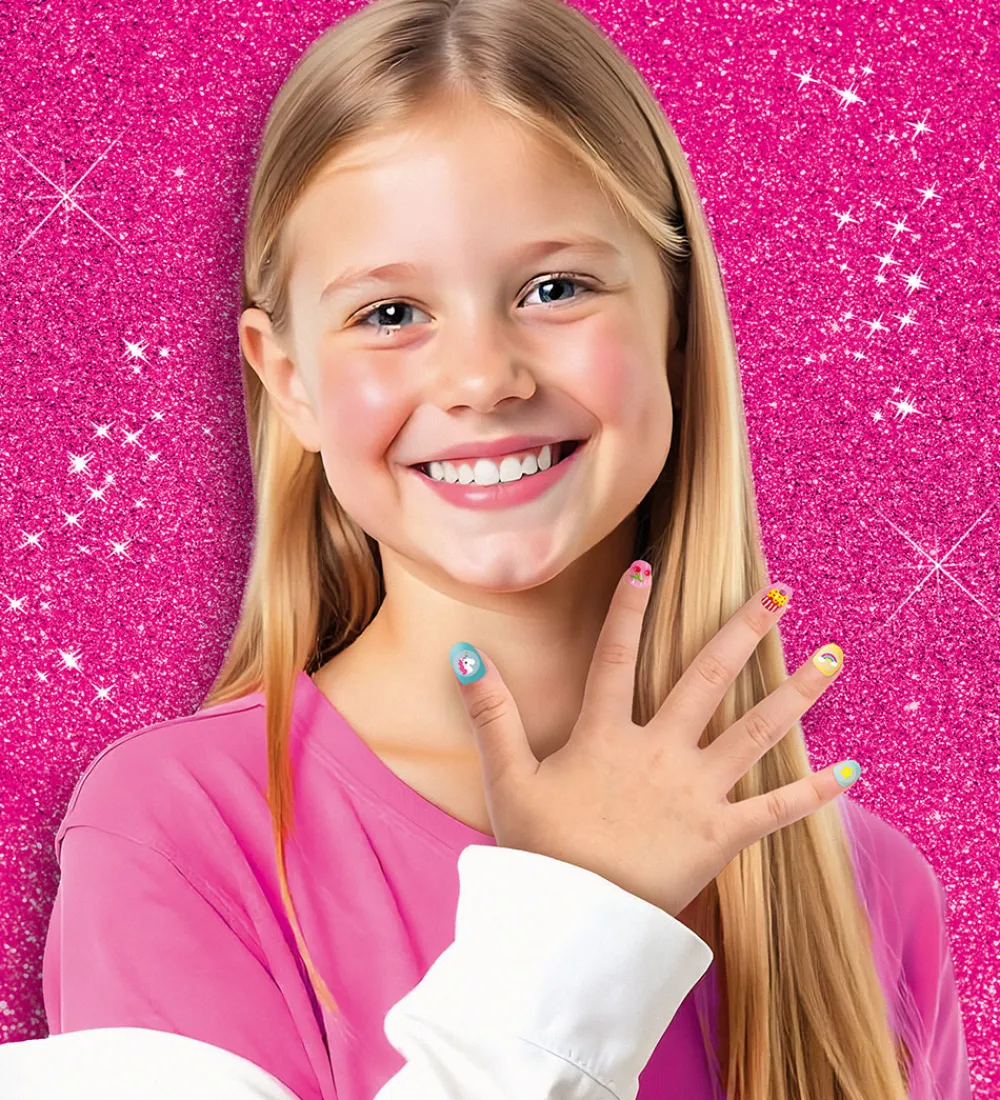 Kreasættet indeholder alt hvad man behøver for at designe fine negle på sig selv eller sine venner. Neglelakken er nem at vaske af tekstil og klistermærkerne er lette at få af neglene igen.