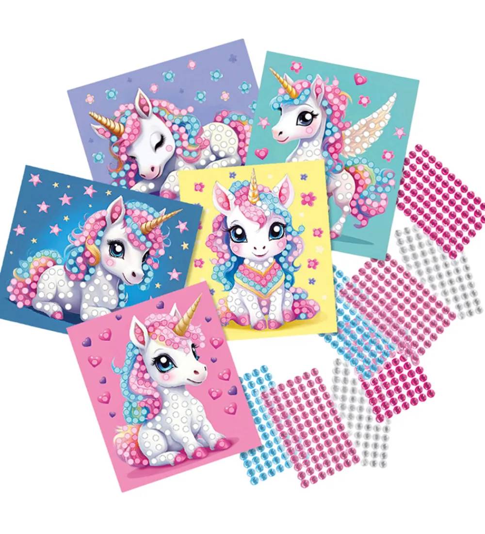 Kreasættet indbyder til kreativ fordybelse, hvor man kan klistrer de medfølgende diamanter på tegningerne i den farve som tegningerne viser. Diamanterne kan også bruges til at skabe sine egne funklende motiver.