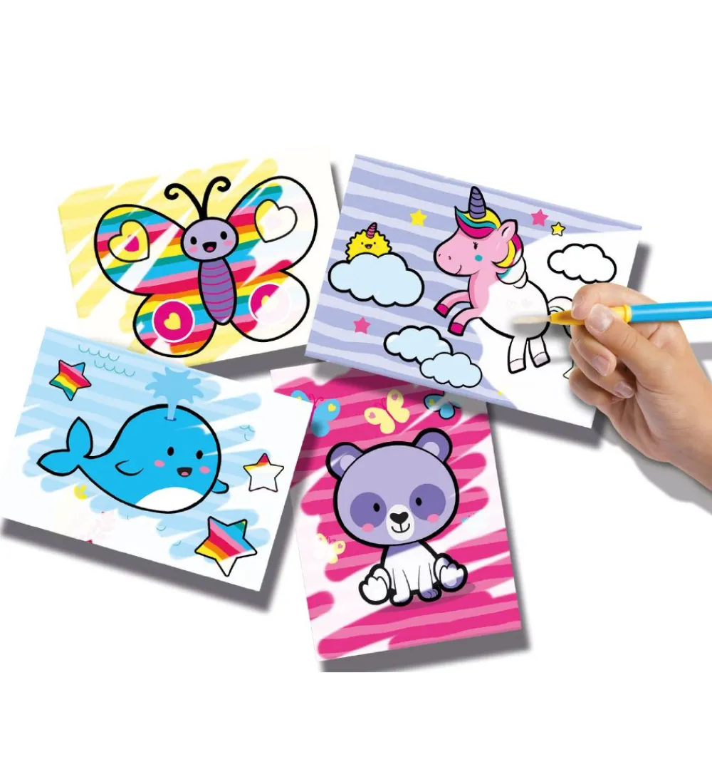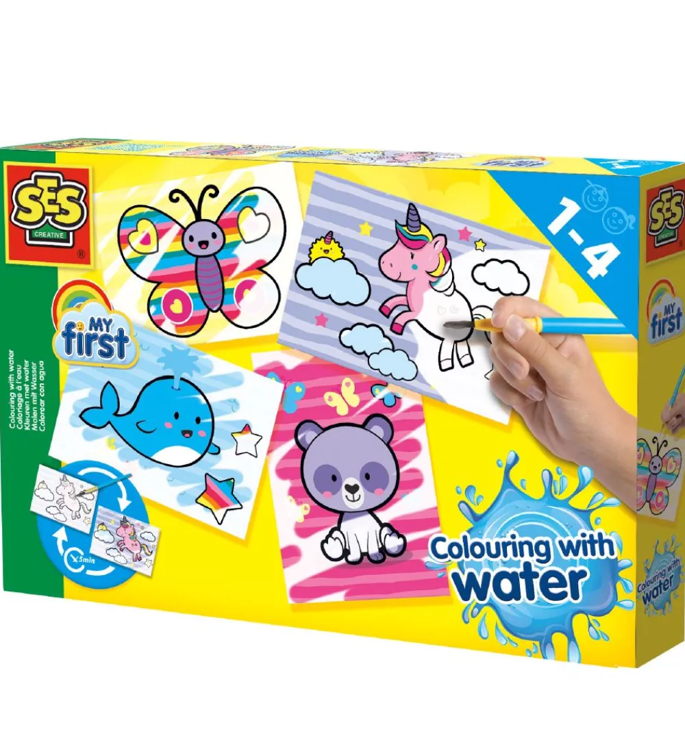 Med SES Creative vandfarverne kan barnet lave smukke billeder. Penslen skal blot gøres våd og derefter kan barnet male henover billedet for at se de mange farver komme frem.
