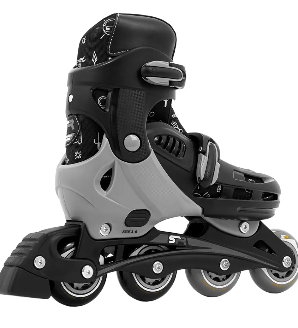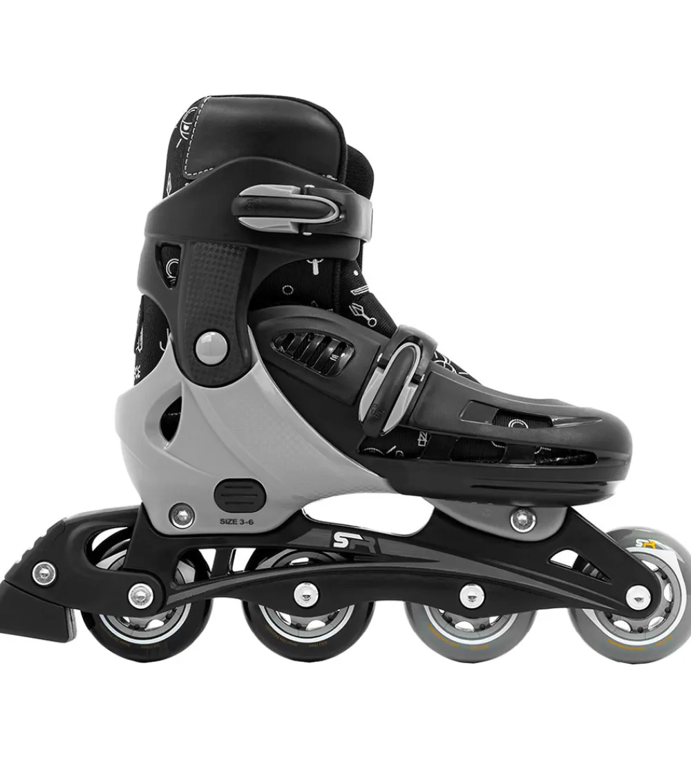 Smarte SFR rulleskøjter i sort og mørkegrå med seje ninja-print.