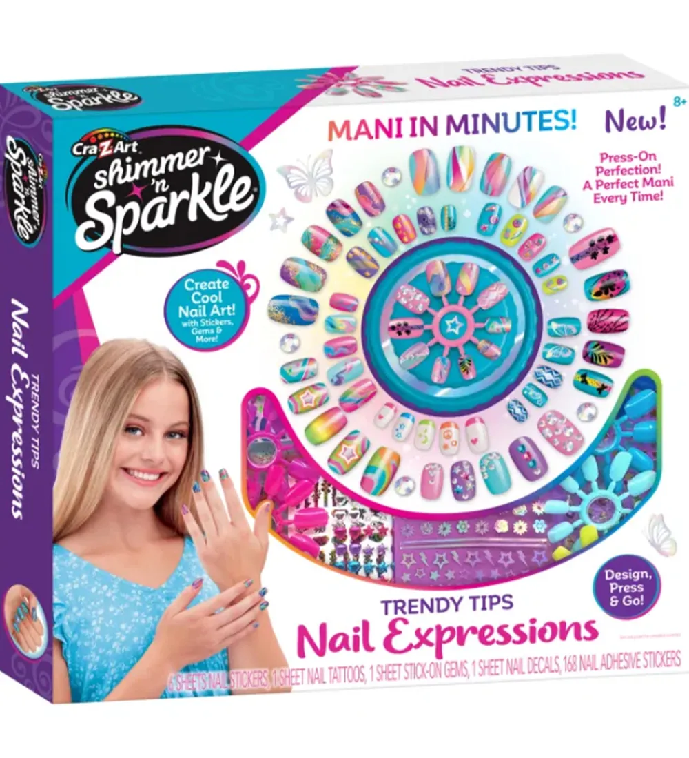 Shimmer N Sparkle neglekunst kittet er perfekt til det kreative barn. Her er alt du skal bruge for at skabe de flotteste negle.