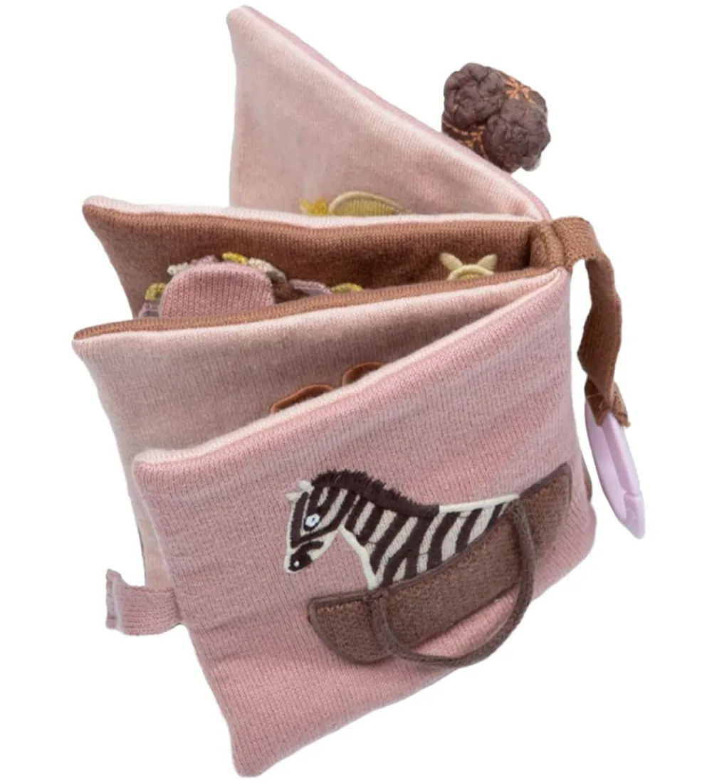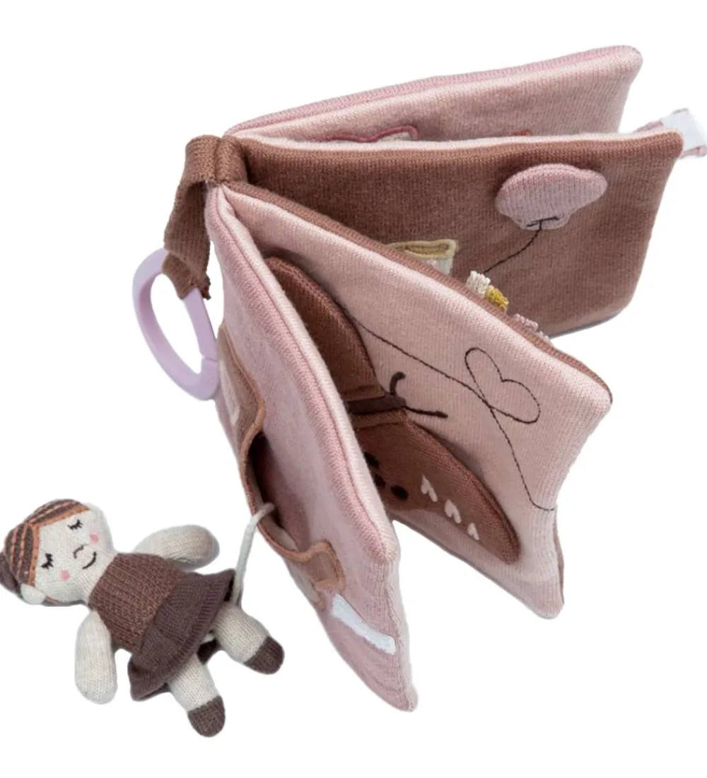 Sødt Smallstuff stofbog i rosa og brunlige nuancer.