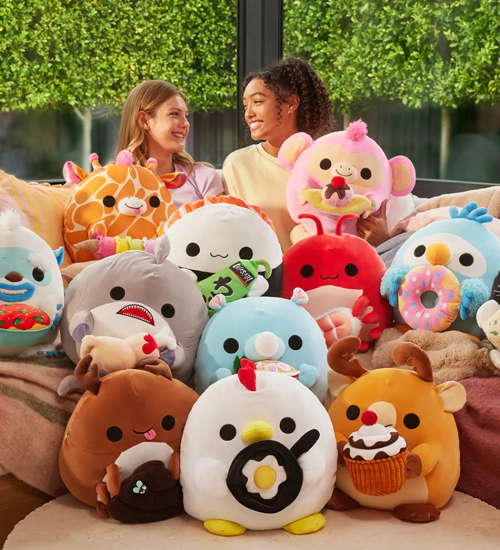 Fin Snackles bamse i form af billen Penny i brun. Bamsen er udformet som en rund pude med en guldfarvet bagside, horn, arme og et broderet ansigt, samt holder bamsen dens favoritsnack.