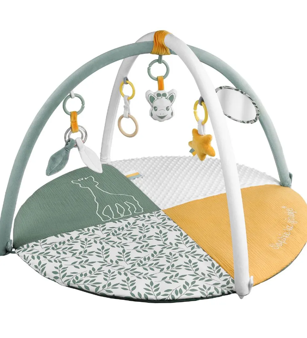 Godt Sophie la Girafe aktivitetstæppe i grøn, hvid og gul.