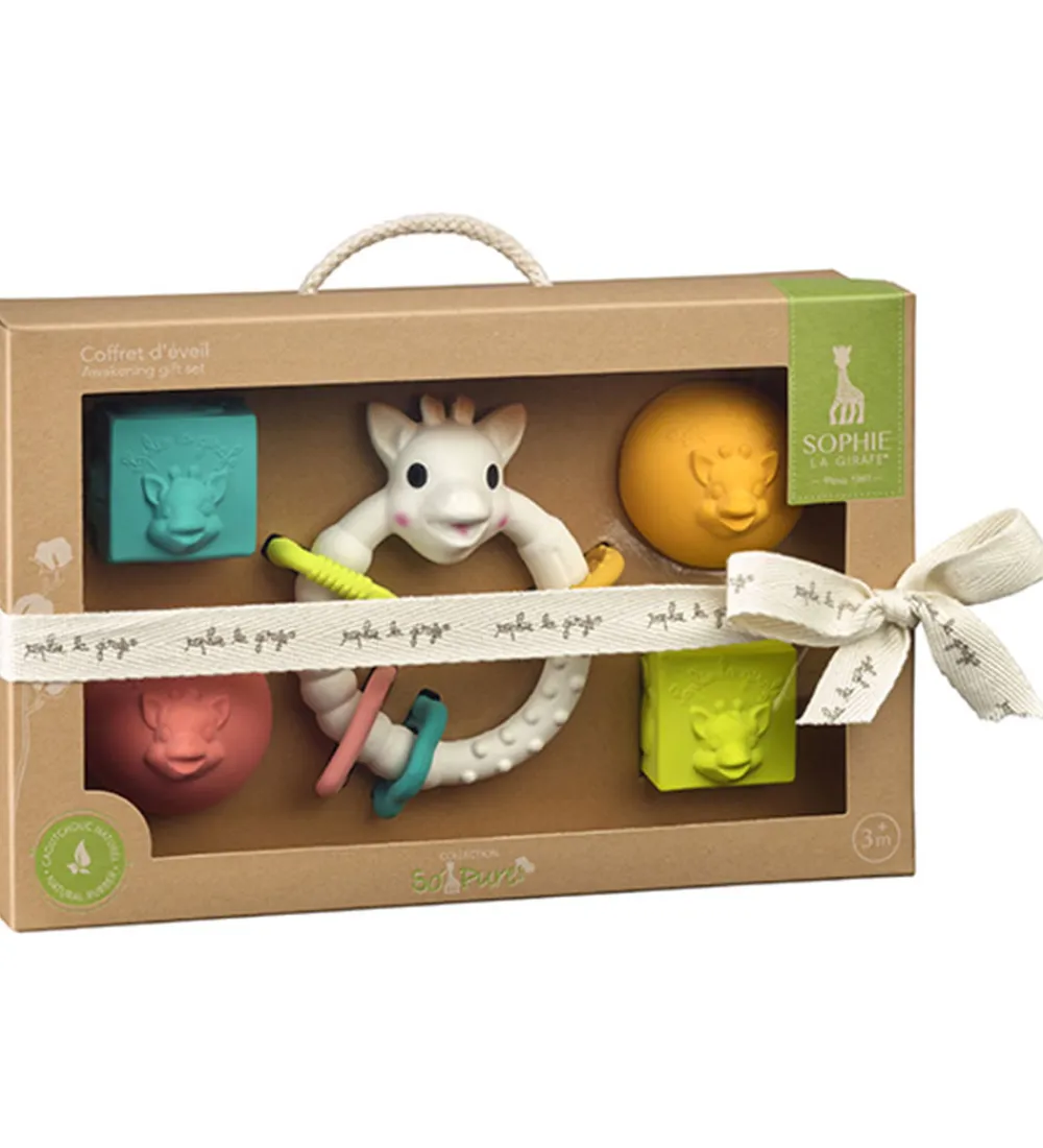 Sophie la Girafe gaveæsken er perfekt som en fin gave til det nyfødte barn, og er med til at stimulere babys sanser og udvikle de finmotoriske færdigheder.
